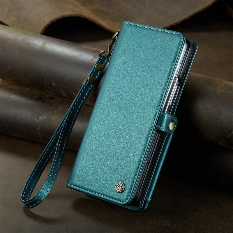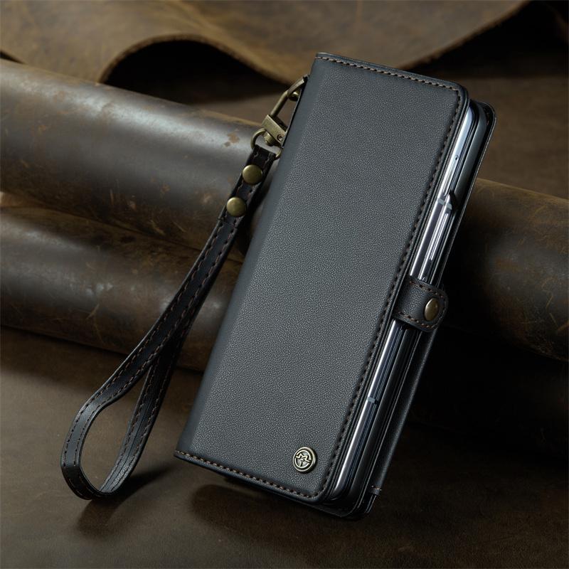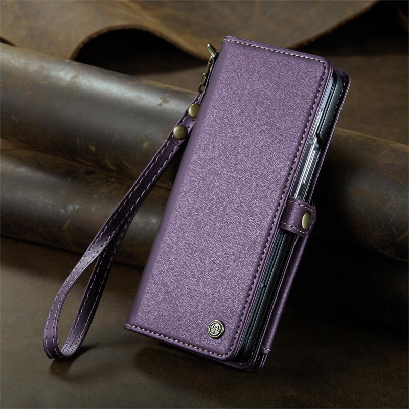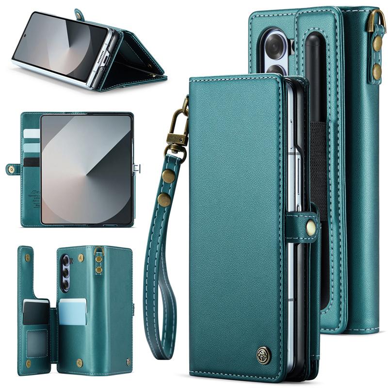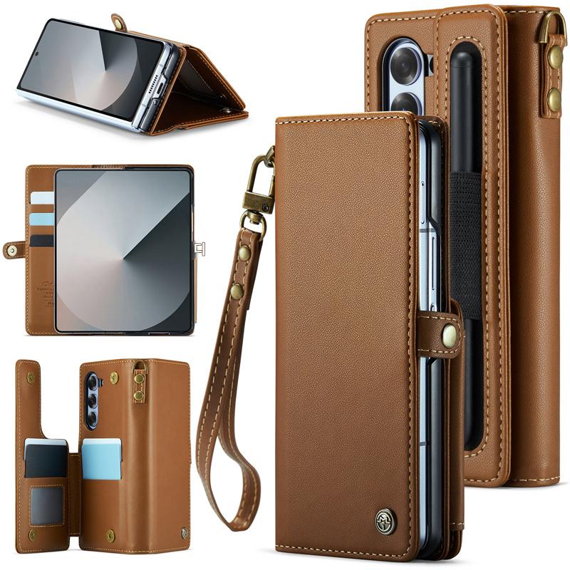 삼성 갤럭시 Z 폴드 6 접이식 스크린 카드 홀더 모바일 폰 케이스에 적합한 도난 방지 카드 스와이핑 방지 카드 삽입 및 변경 방지 자기 제거 카드 슬롯 보호 커버가 있는 새로운 플립 커버