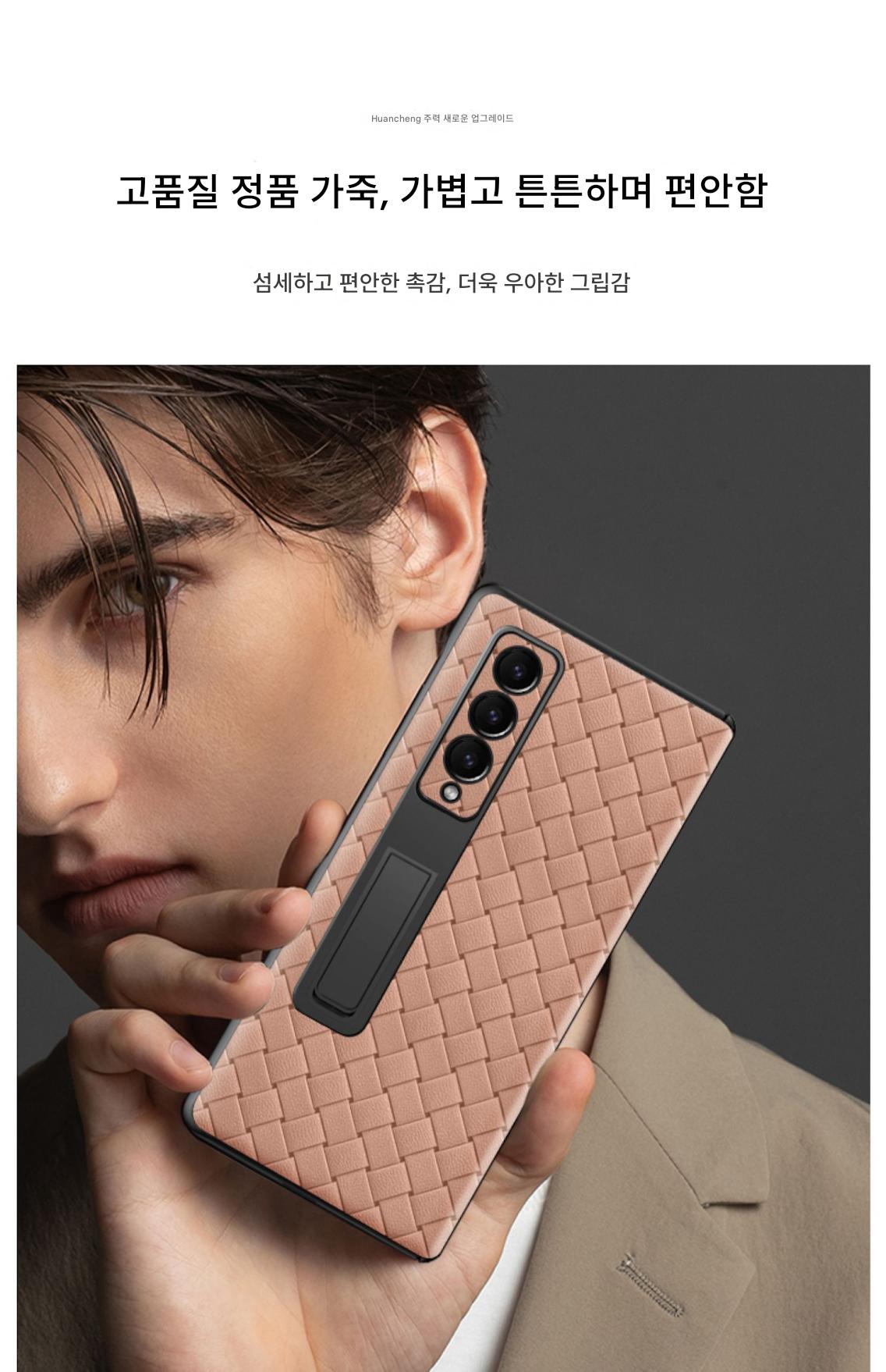 삼성 Z폴드7 신형 W25 짠 패턴 접이식 스크린 정품 가죽 초박형 폴드6/5 보호 커버 힌지 전체 패키지 낙하 방지 폴드4 쉘 크리에이티브 브래킷 폴드3 고급 촉감에 적합