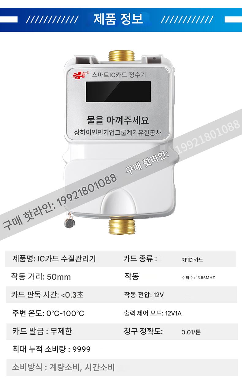 상하이 인민 지능형 카드 욕조 물 제어 기계 통합 물 분배기 수도꼭지 물 출구 제어 IC 카드 물 미터