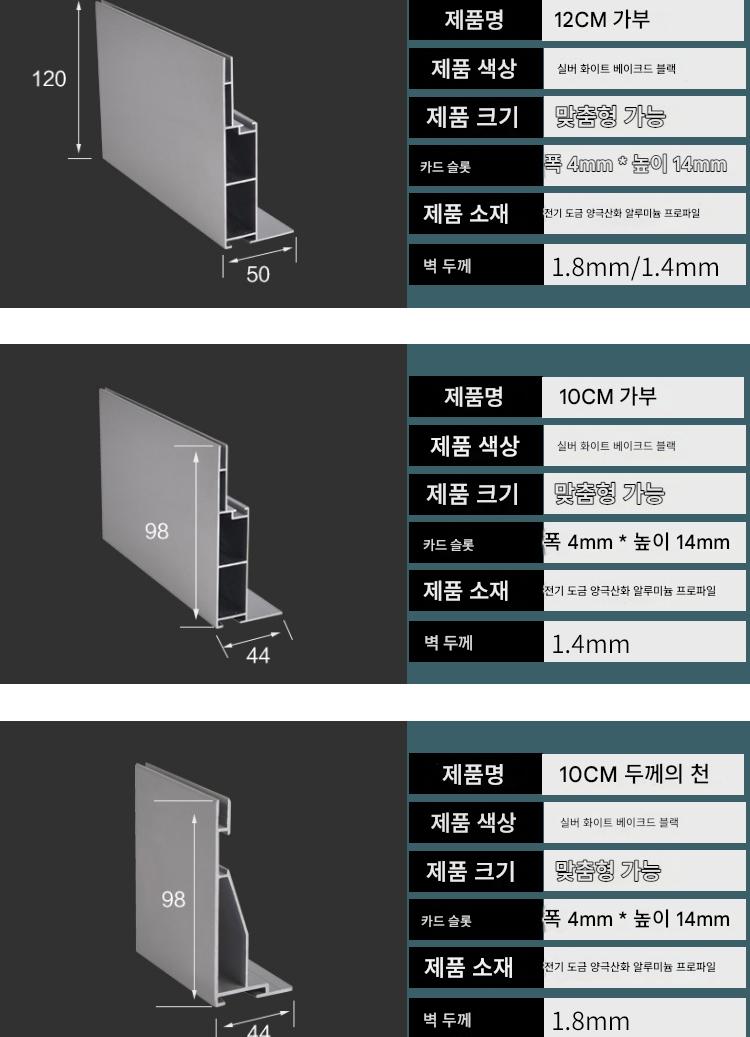 一米(切角 送配件) > 12公分卡布型材银白1.4MM