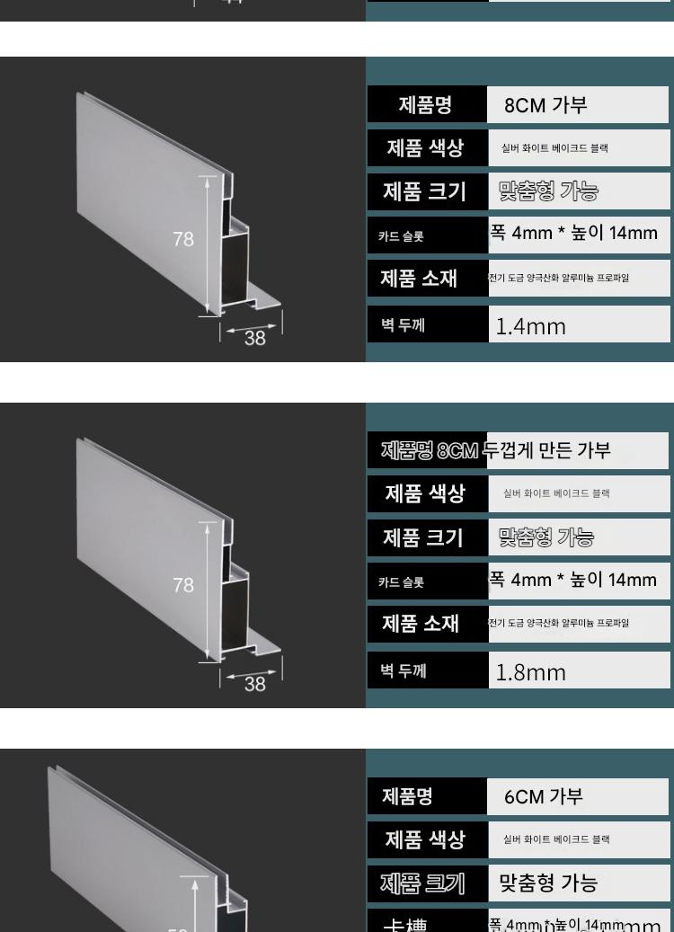 一米(切角 送配件) > 8公分双面卡布型材1.2MM