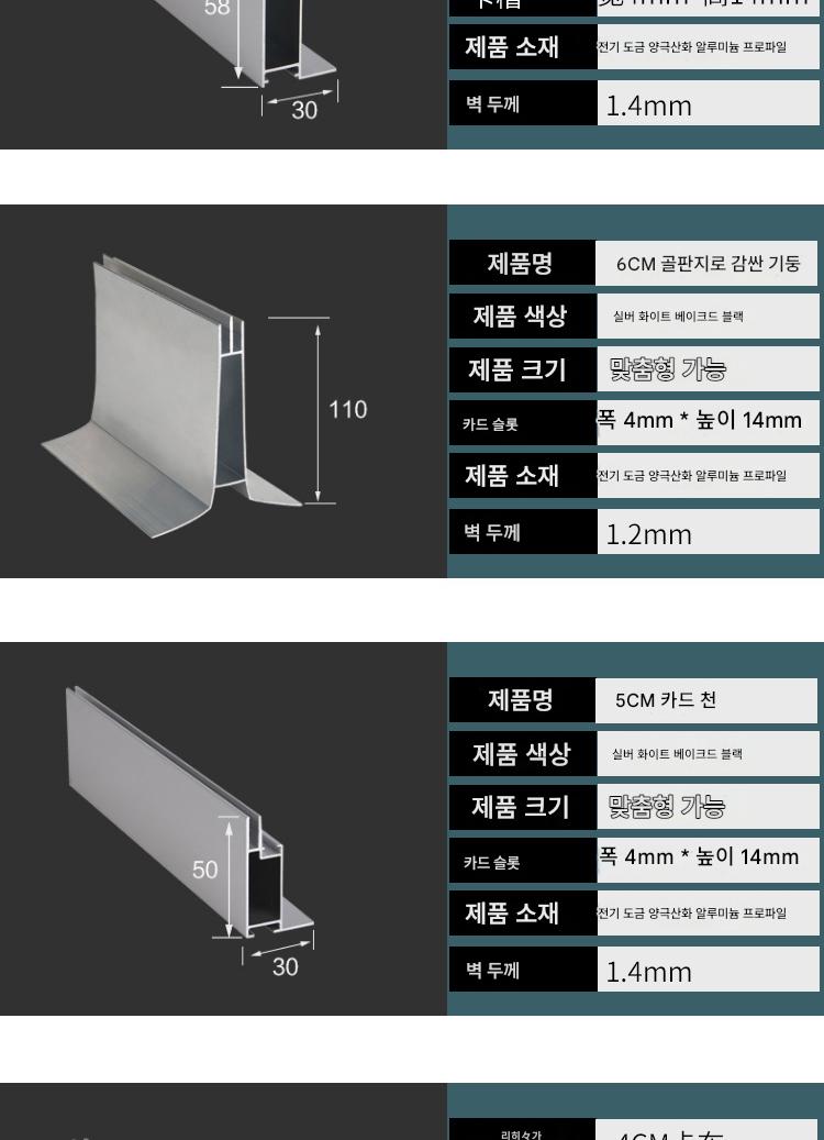 六米(不切角 送配件) > 4公分卡布型材银白1.0MM