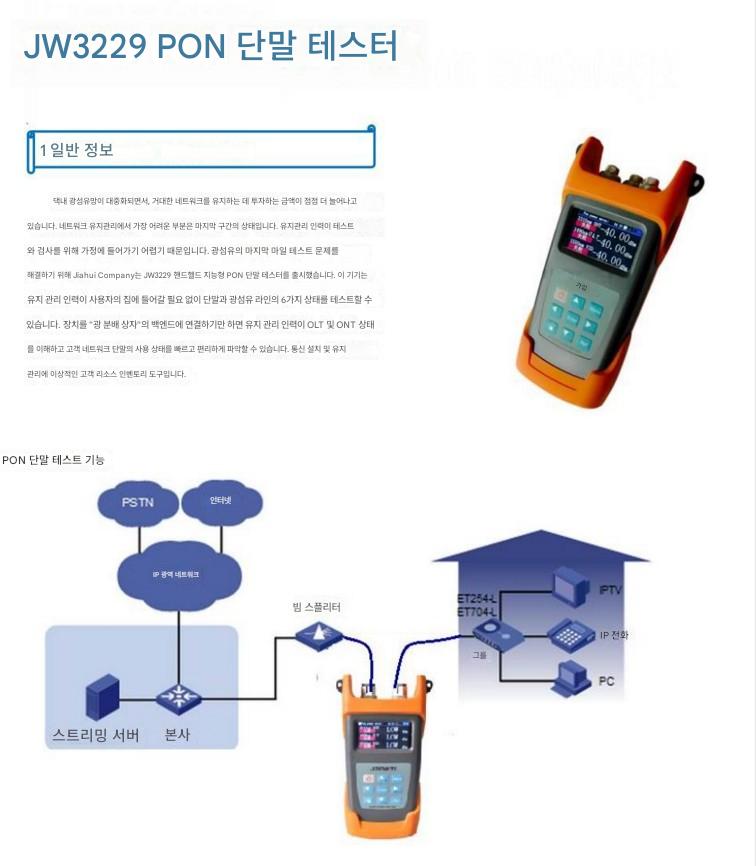상하이 Jiahui JW3229/JW3239 컬러 스크린 PON 네트워크 단말 상태 테스터 리소스 인벤토리 계측기