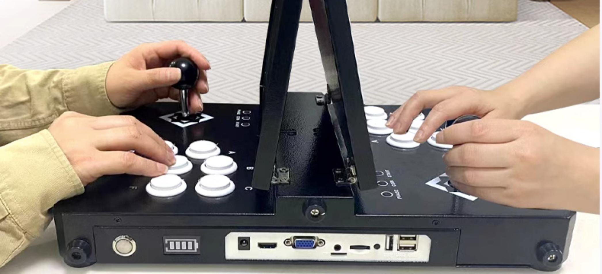 새로운 듀얼 스크린 판도라 문라이트 박스 2인용 아케이드 파이팅 조이스틱 휴대용 통합 게임 콘솔 동전 작동 접이식