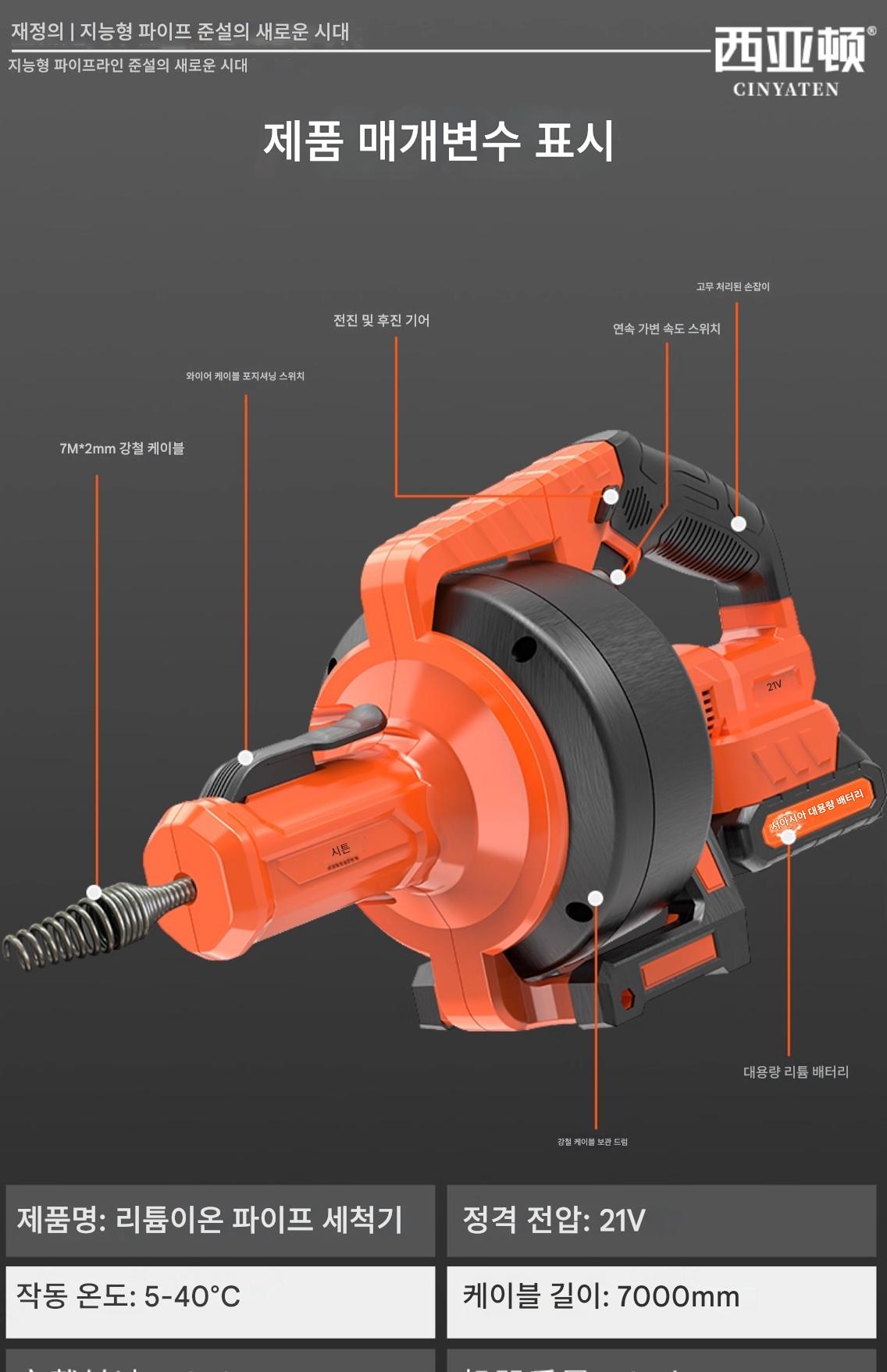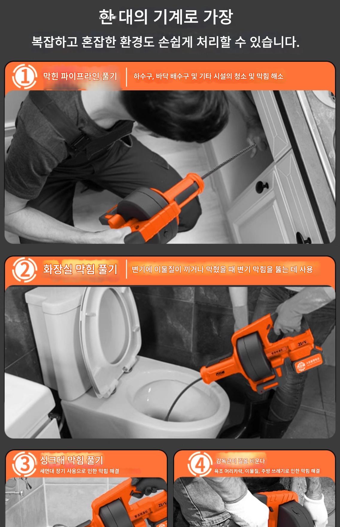 새로운 리튬 배터리 파이프 준설 기계 전문 부동산 주방 하수구 변기 가정 막힘 청소 유물