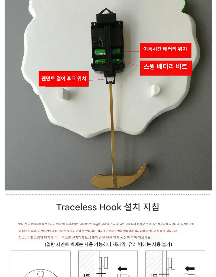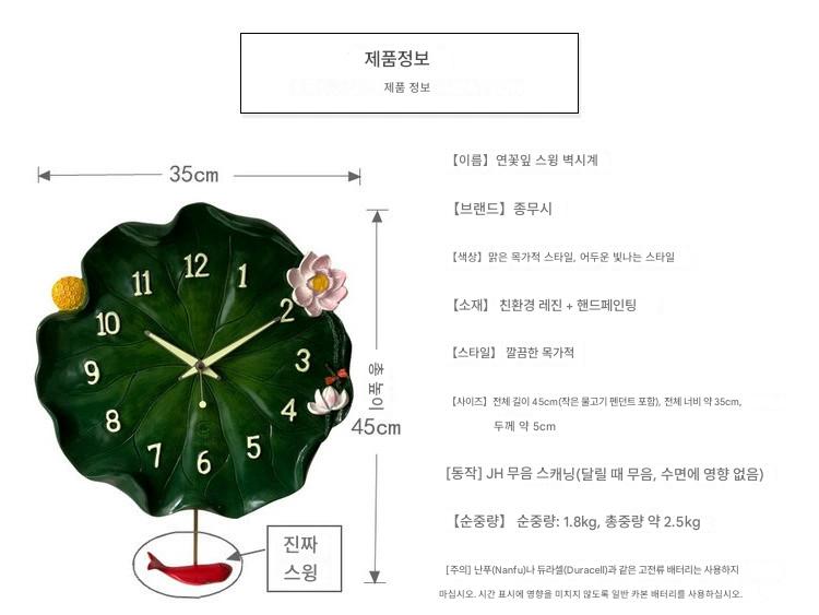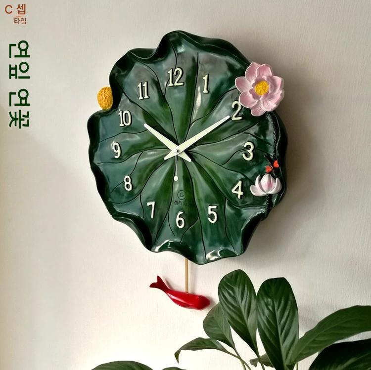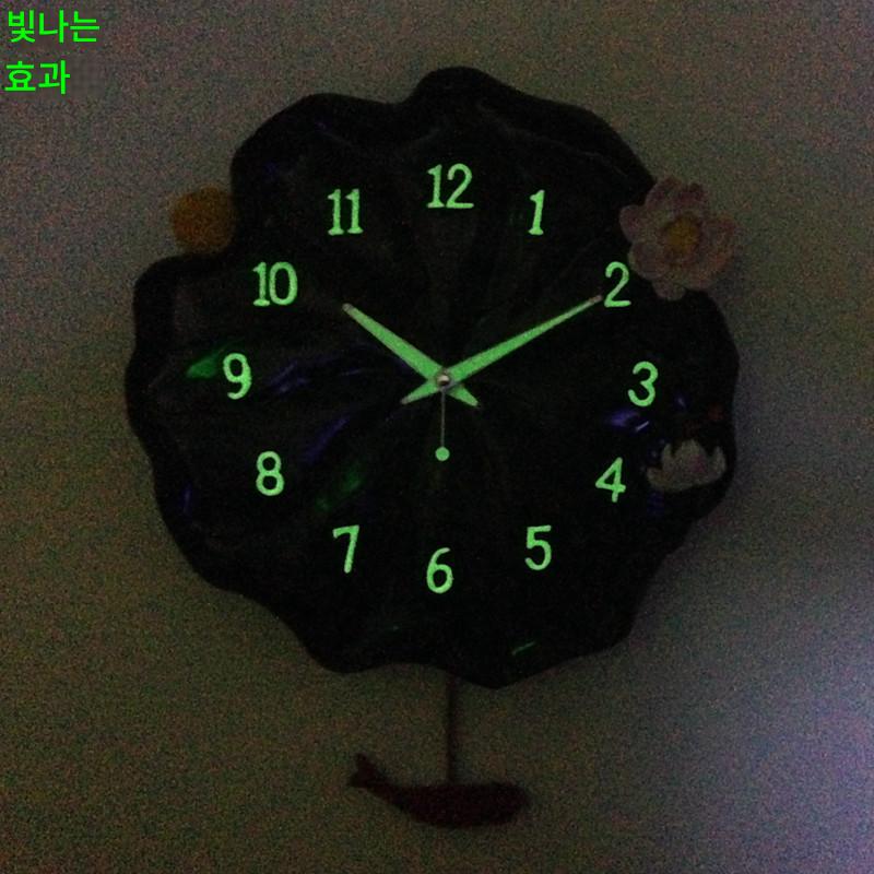 새로운 목가적인 연꽃잎 벽시계 창의적인 조용한 거실 스윙 시계 14인치 흥미로운 빛나는 홈 시계