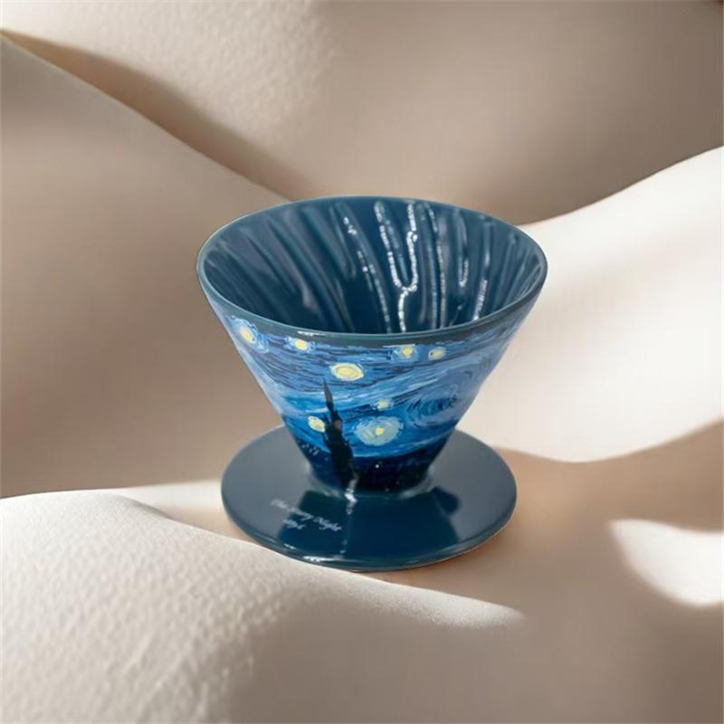 새로운 배치 | 일본 HARIO 반 고흐 별이 빛나는 밤 필터 컵 아리타웨어 V60 드립 필터 컵 한정판 핸드 포어드 커피 컵
