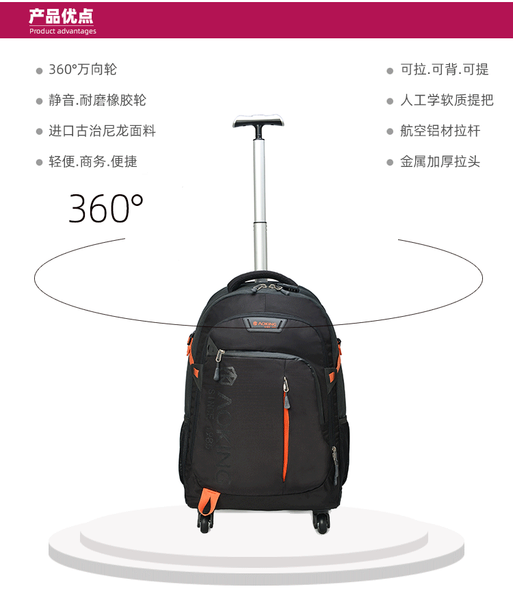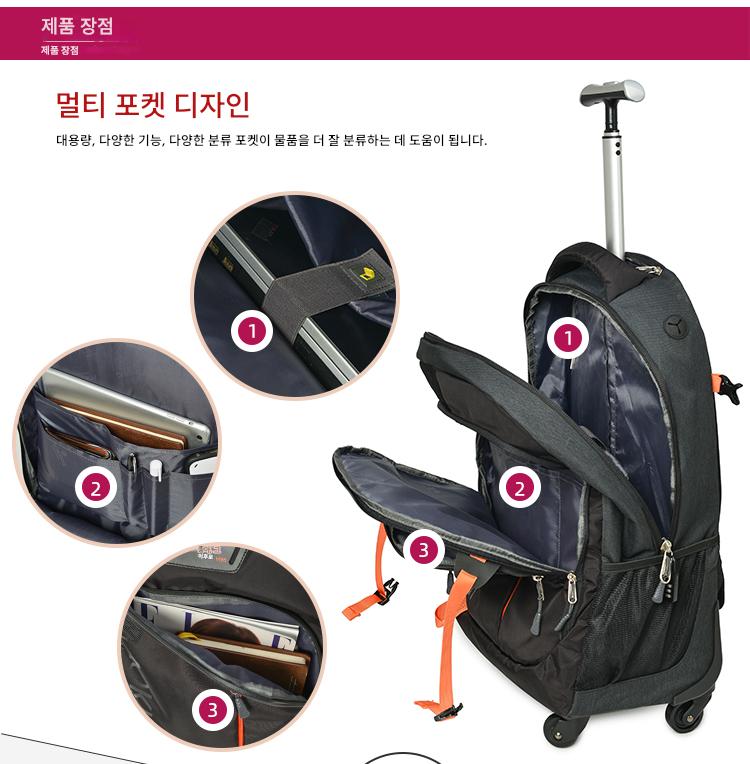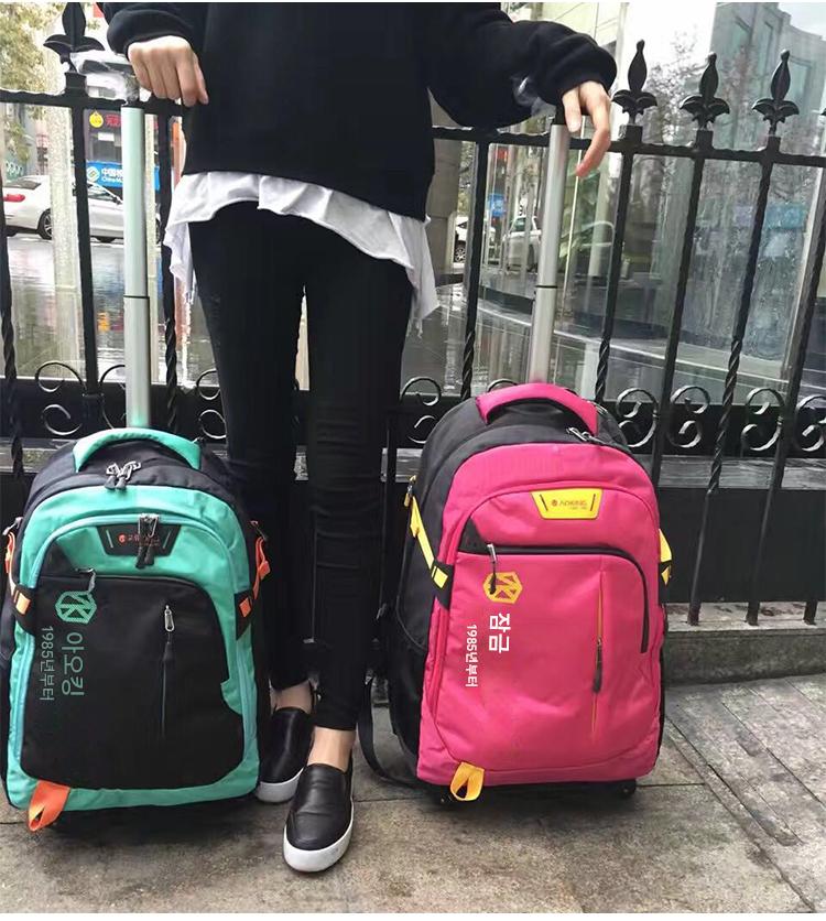 새로운 스타일 숄더 트롤리 백 대용량 핸드백 여행 가방 범용 휠 방수 수하물 가방 싱글 폴 학생 백팩