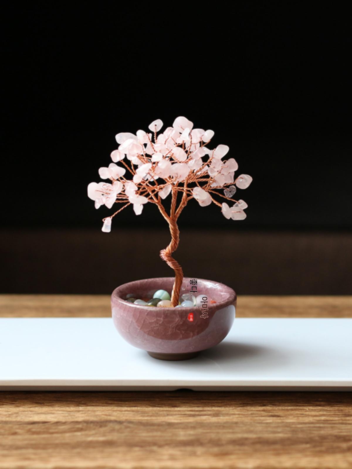 새로운 시트린 자수정 로즈 쿼츠 포춘 트리 홈 오피스 책상 장식 홀리데이 선물 선물