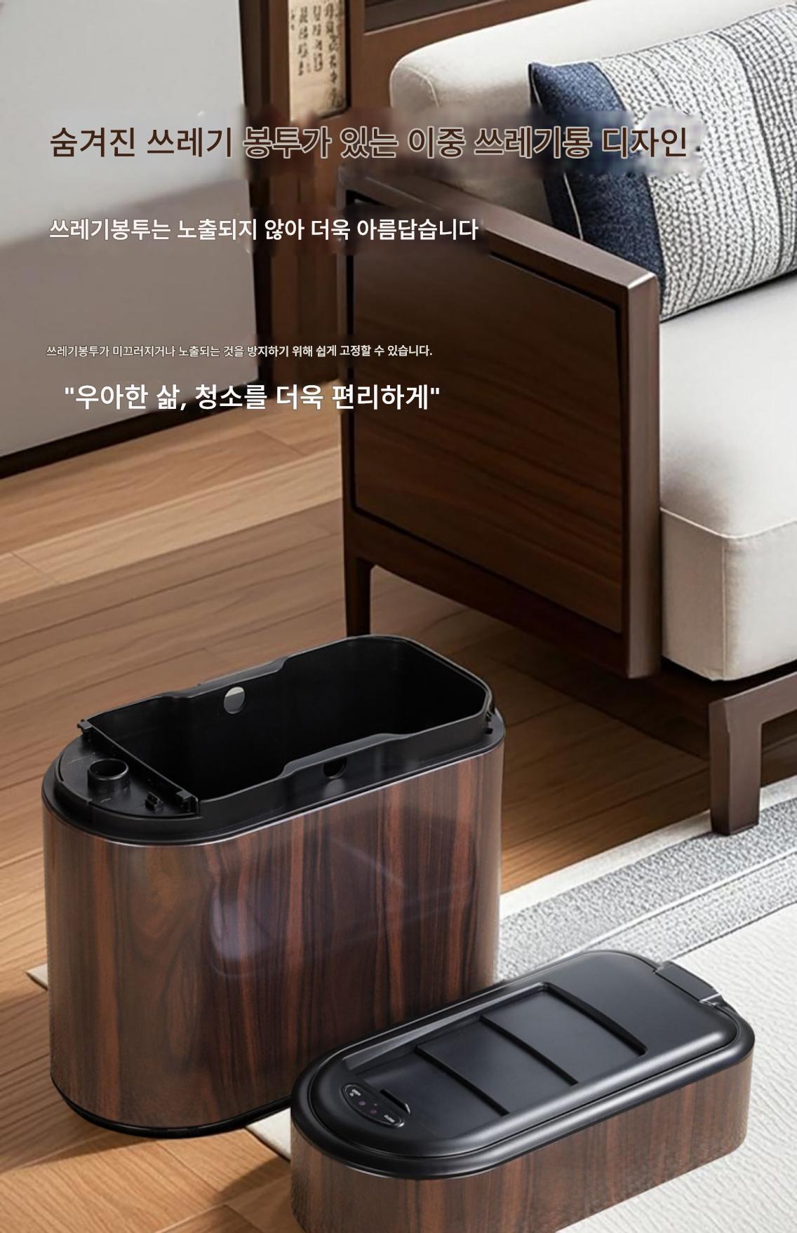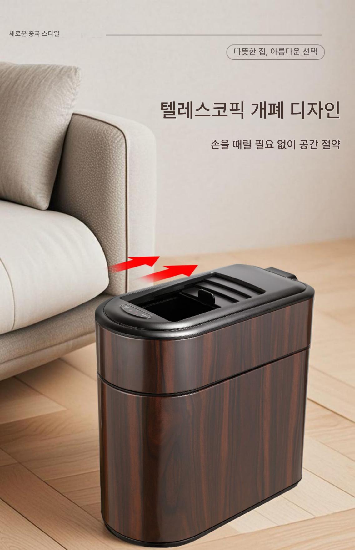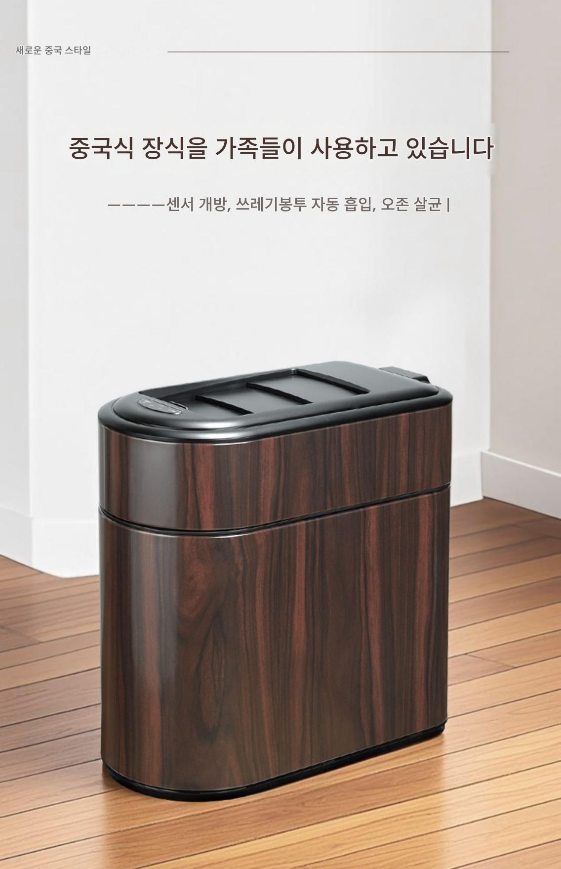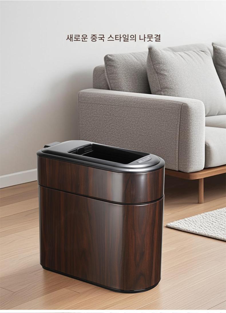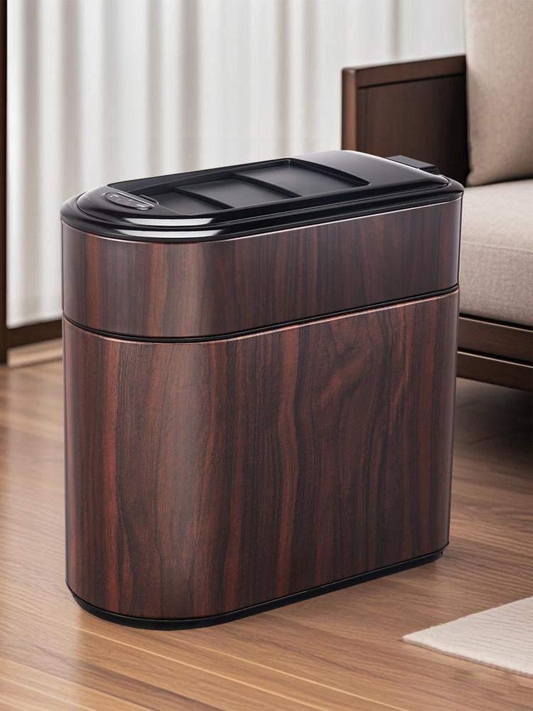 새로운 중국식 스마트 쓰레기통 목재 무늬 틈새 유도등 고급 고급 가정 주방 거실 전기 자동