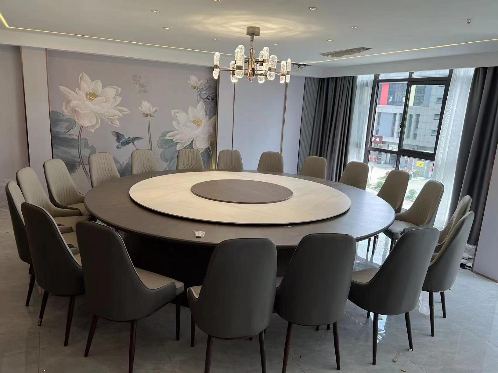 새로운 중국식 호텔 식탁 전기 록 턴테이블 대형 원형 테이블 및 의자 15명 20명 호텔 박스 클럽 2미터 원형 테이블