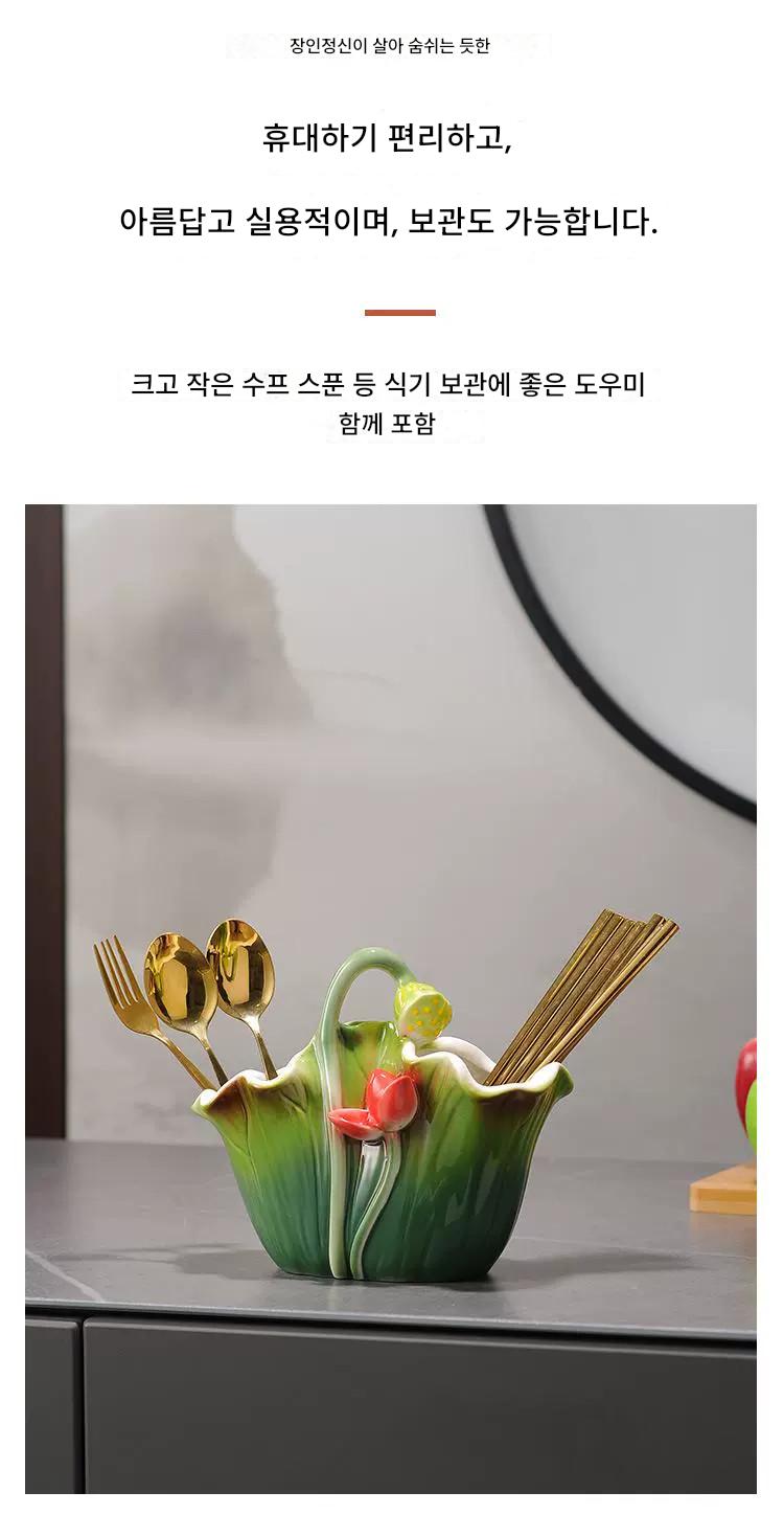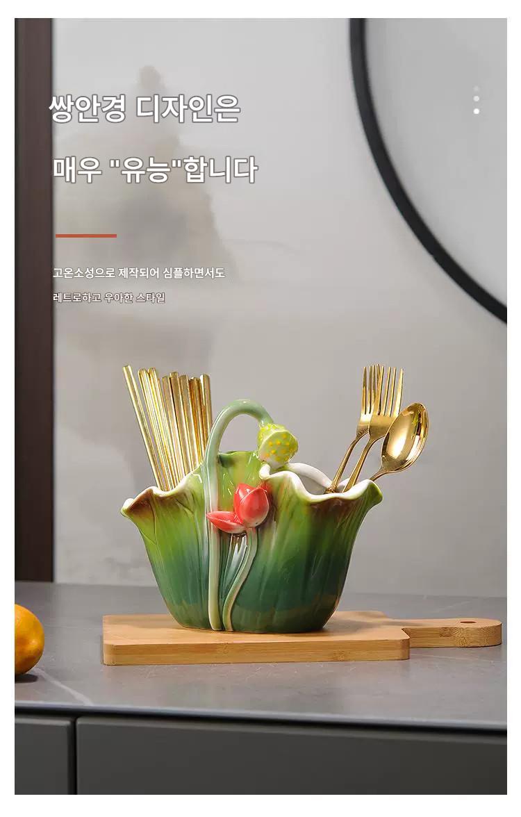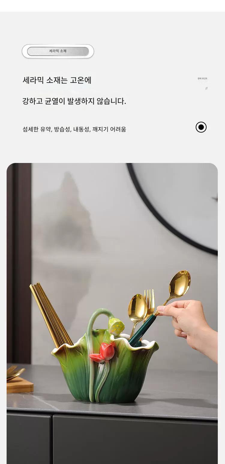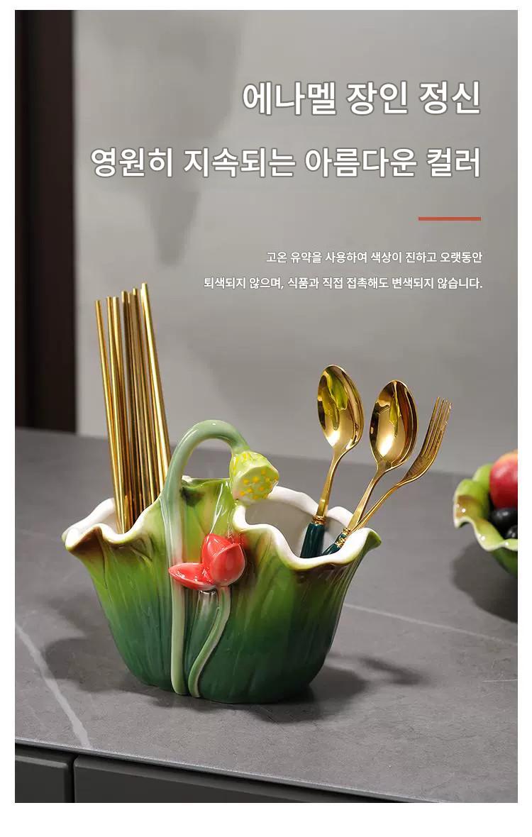 새로운 중국 스타일 에나멜 세라믹 젓가락 튜브 식기 숟가락 보관 상자 가정용 이중 튜브 젓가락 홀더 원래 연꽃 잎 젓가락 케이지