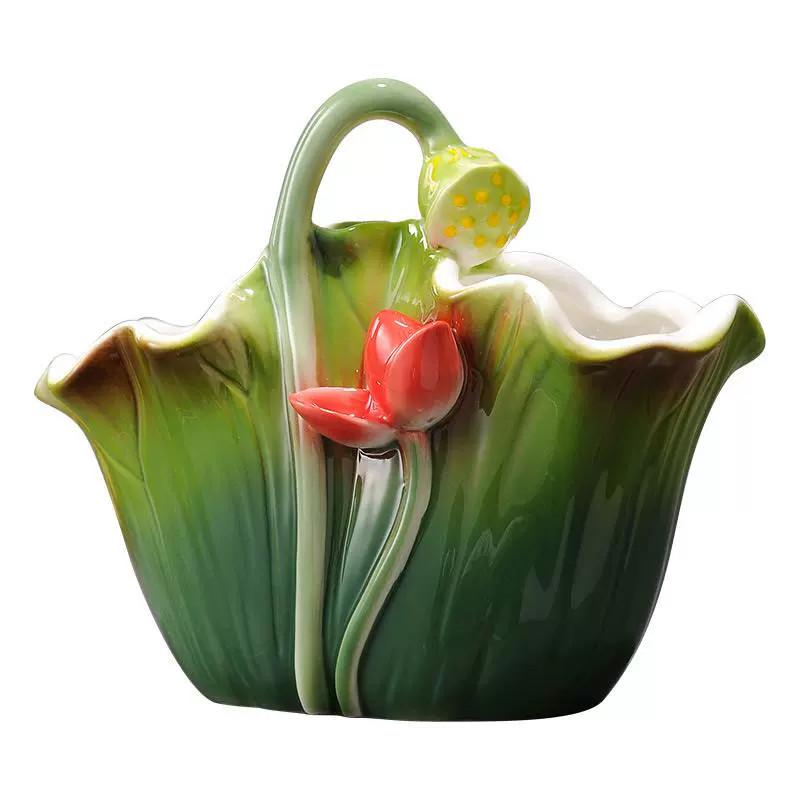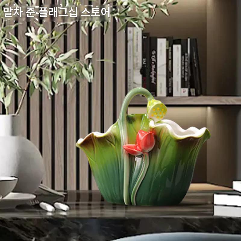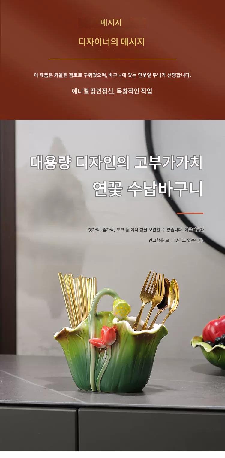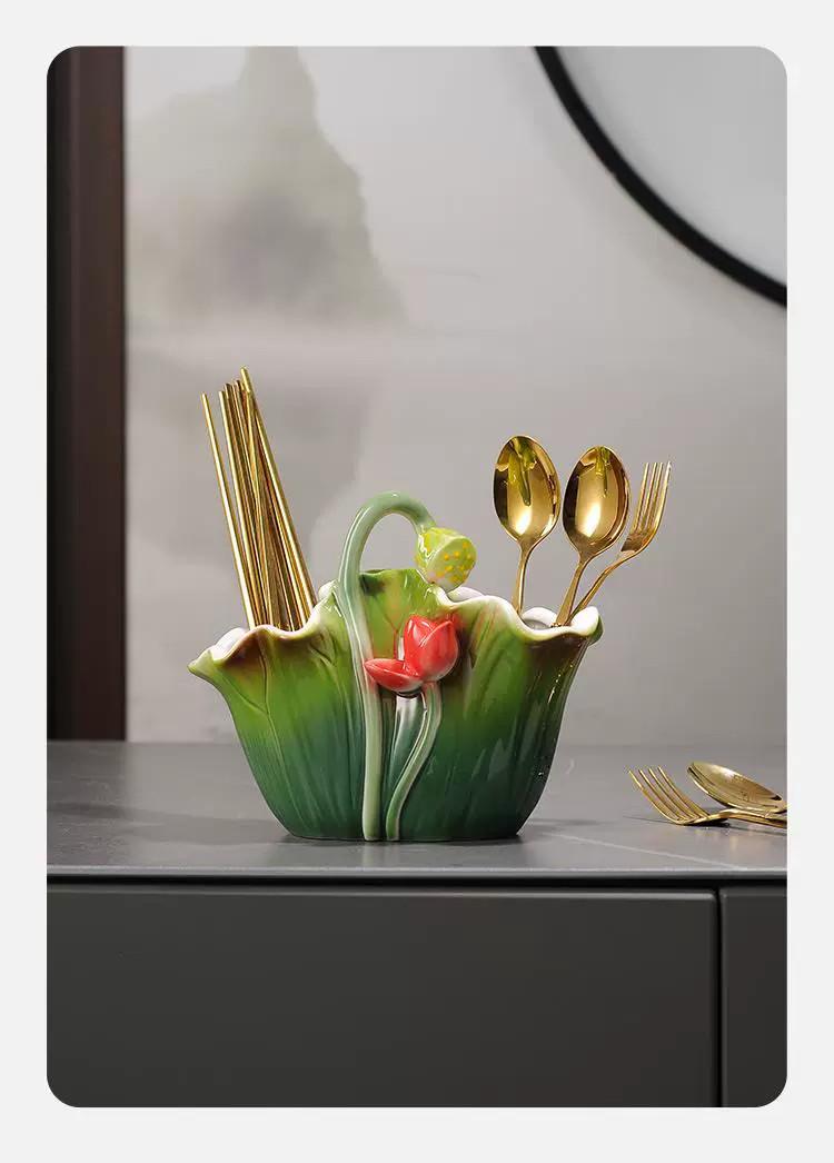 새로운 중국 스타일 에나멜 세라믹 젓가락 튜브 식기 숟가락 보관 상자 가정용 이중 튜브 젓가락 홀더 원래 연꽃 잎 젓가락 케이지
