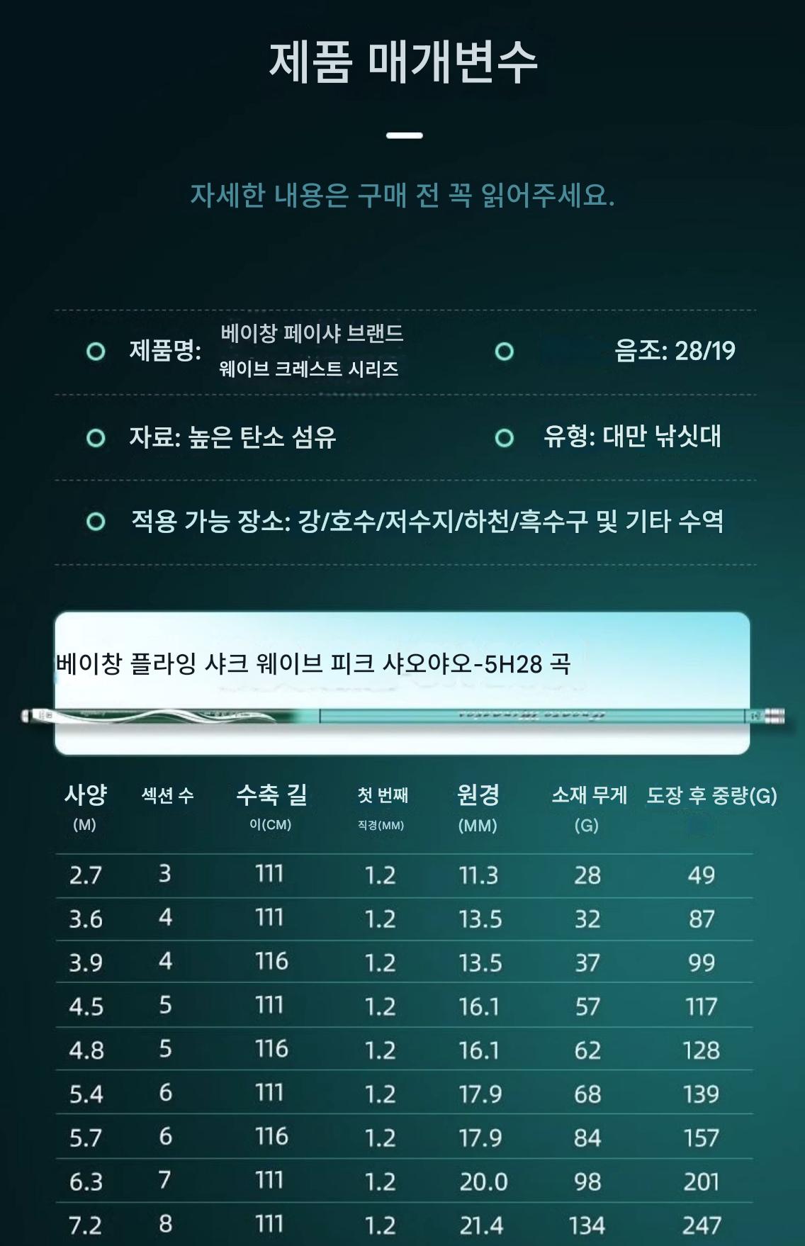 새로운 핸드로드 낚싯대 베이창 카본 낚싯대 핸드로드 초경량 초경량 19톤 8H 빅로드 정품 대만 낚싯대