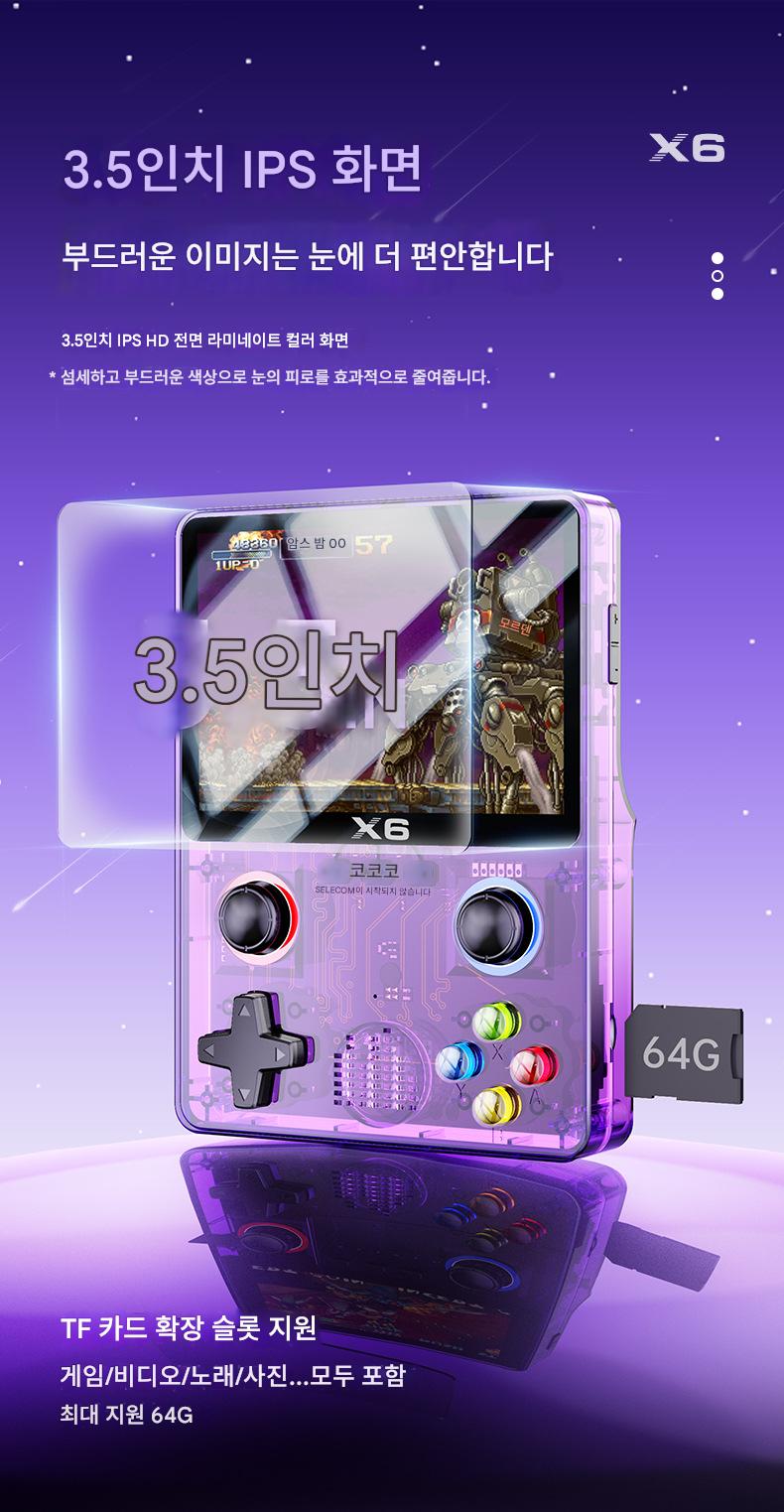 새로운 Mecha X6 핸드헬드 투명 게임 콘솔 엔트리 레벨 3.5인치 아케이드 GBA 듀얼 조이스틱 FC 핸드헬드 선물