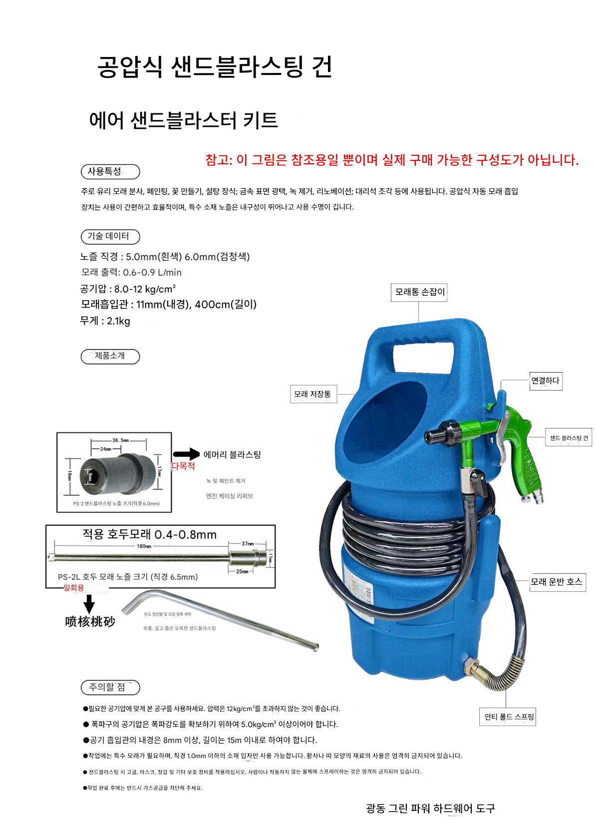 샌드블라스팅 버킷은 강도와 샌드 출력을 ,PS 2LTT 다목적 호두 모래 롱 스프 ,1미터 검은 짚이 달린 모델 PS 2 스 ,분사 강도를 조절하기 위한 1미터 검은 ,2m 검은 모래 흡입 호스가 있는 모델 ,모델 PS 2T 2M 2m 검은 모래 흡 ,3m 검은 모래 흡입 호스가 있는 모델 ,모델 PS 2T 3M 3m 검은 모래 흡 ,2개의 추가 주석 노즐이 있는 모델 PS ,2개의 스테인리스 스틸 노즐 직경 5 0 ,2개의 검은색 철 노즐이 있는 모델 PS ,2개의 검은색 철 노즐이 장착된 모델 P ,모델 PS 2 세라믹 노즐 직경 5 0m ,모델 PS 2T 세라믹 노즐 직경 5 0 |