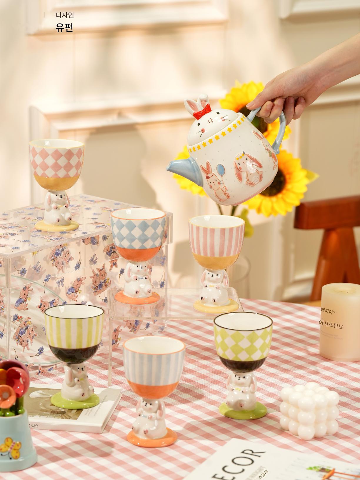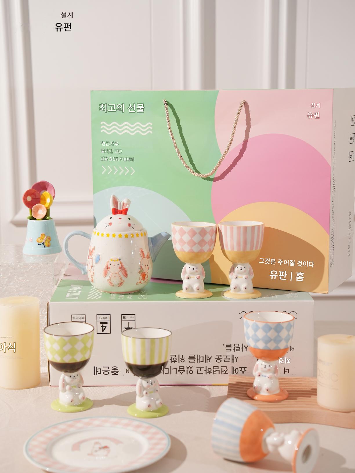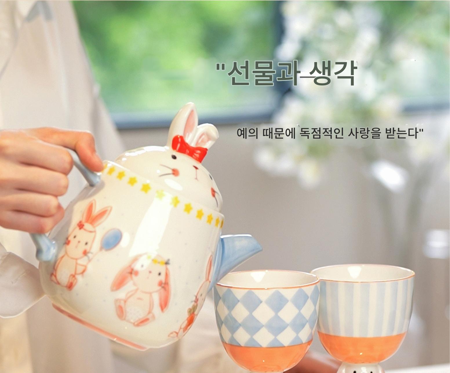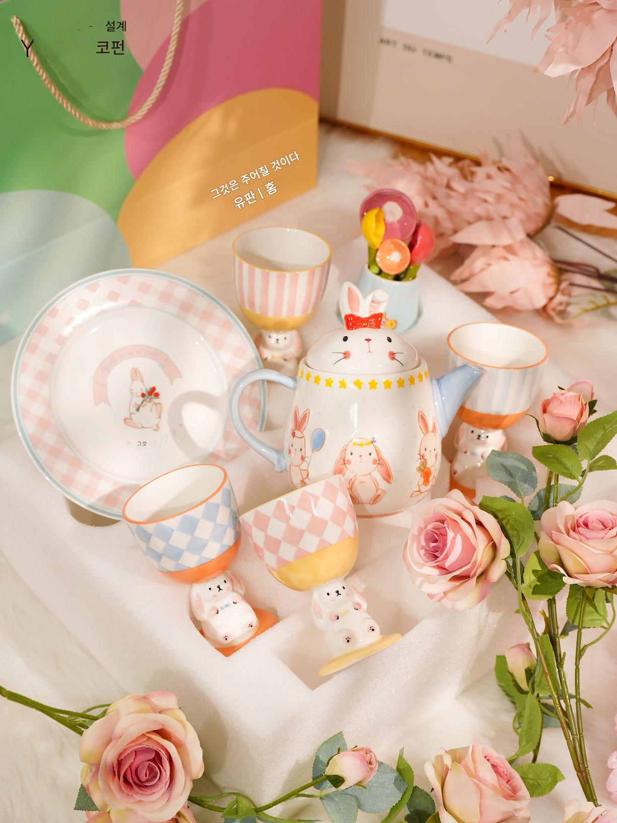 생일선물 새해선물 여자아이 찻주전자 세트 토끼 머그잔 티컵 귀여운 신혼집 이사선물 티세트