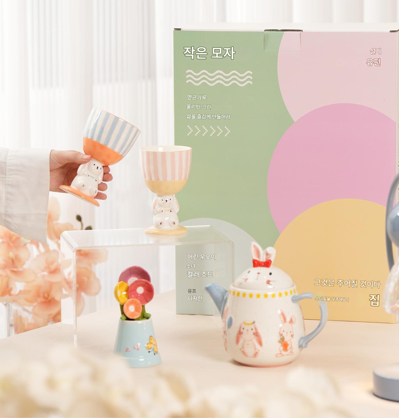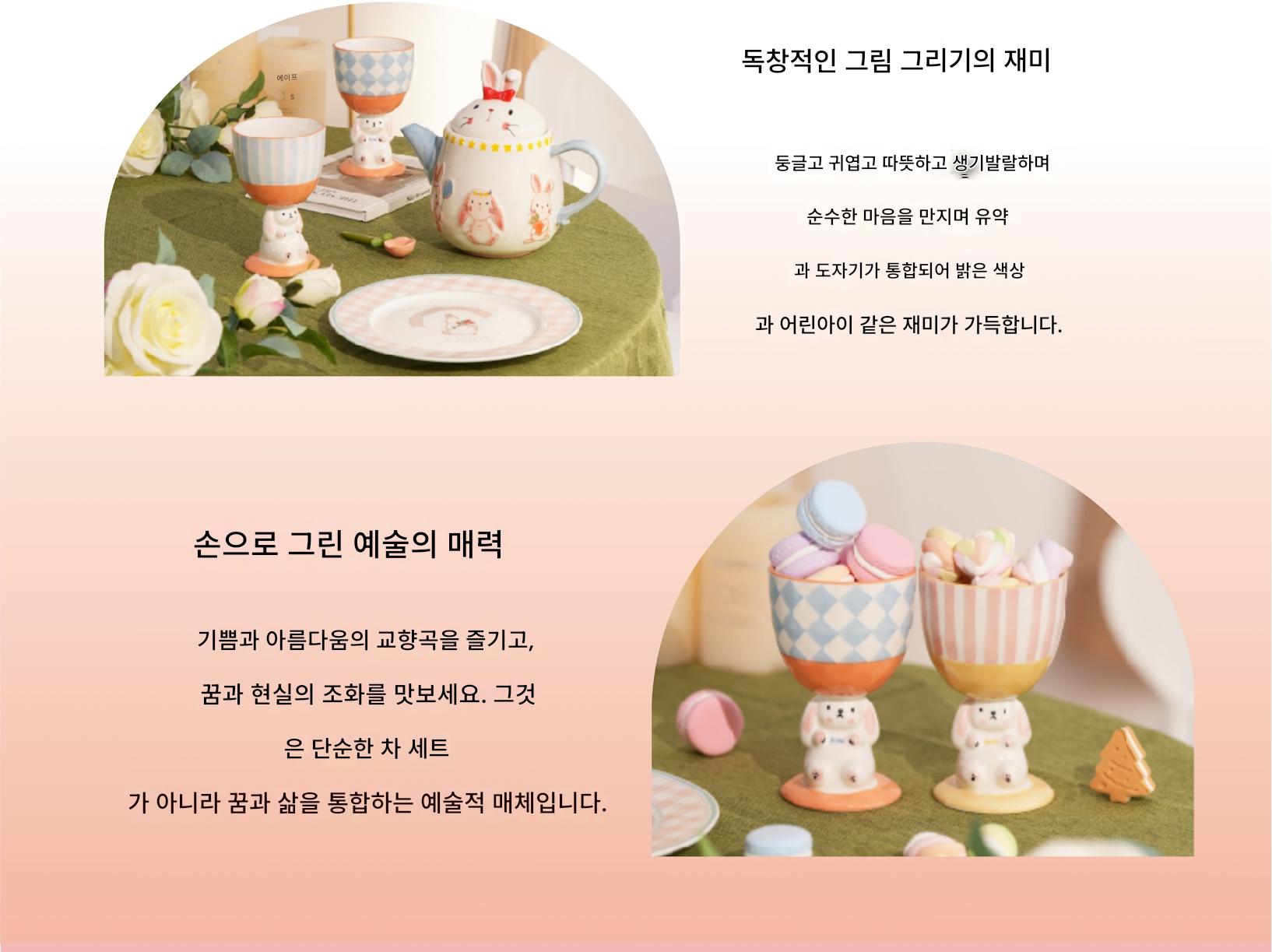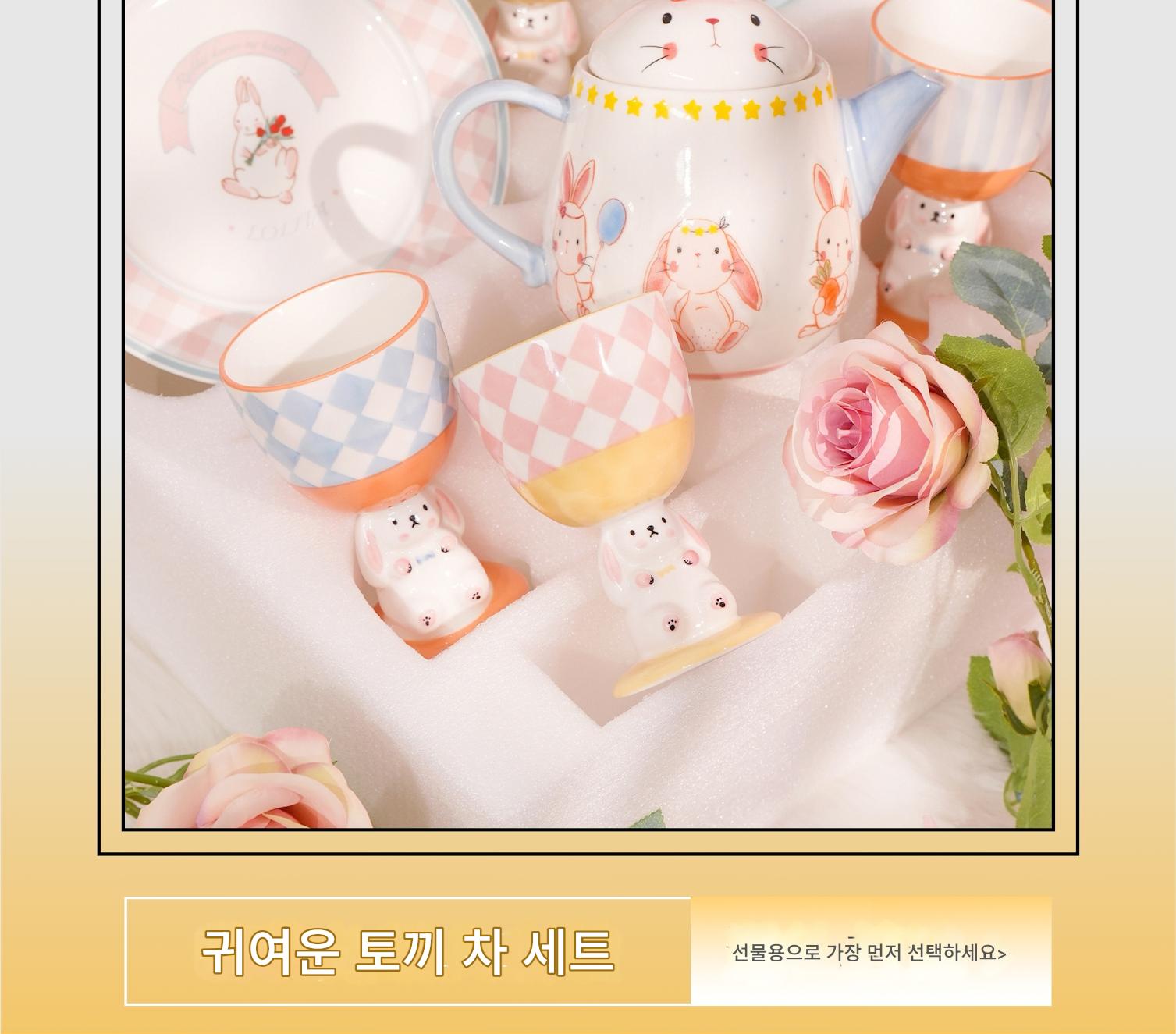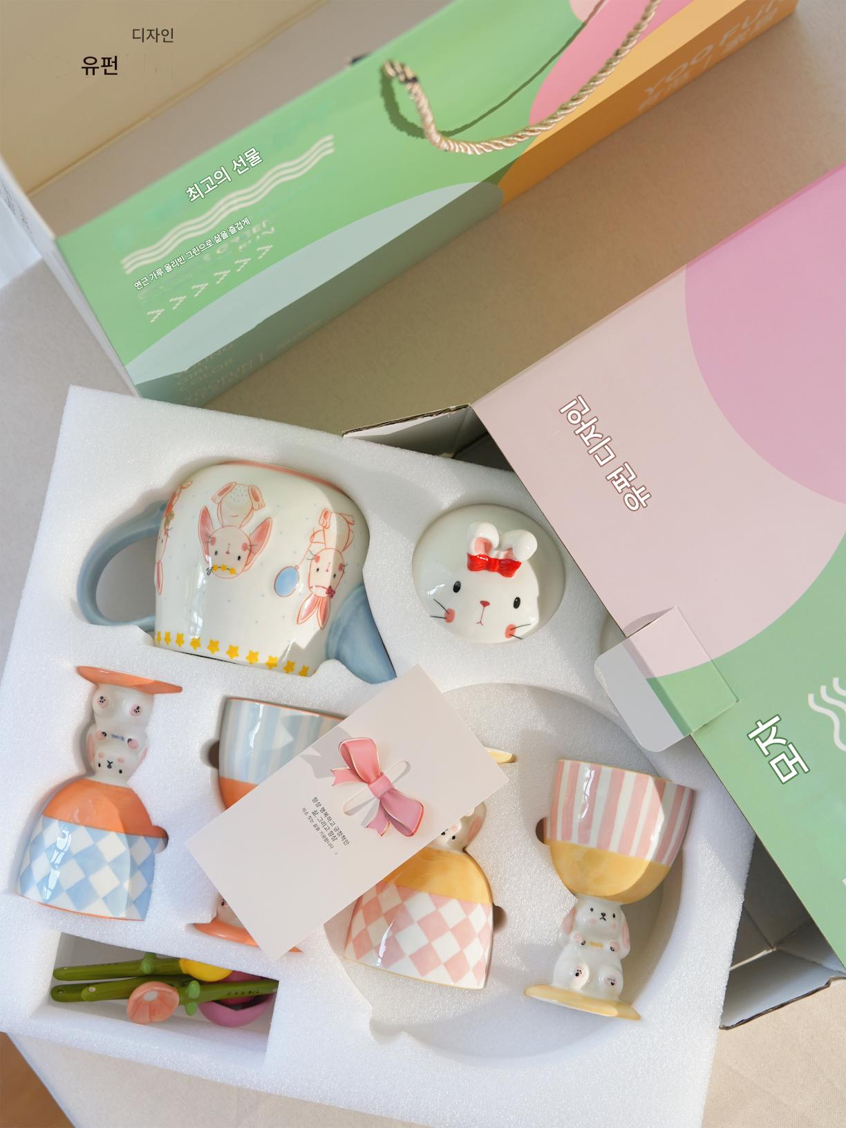 생일선물 새해선물 여자아이 찻주전자 세트 토끼 머그잔 티컵 귀여운 신혼집 이사선물 티세트