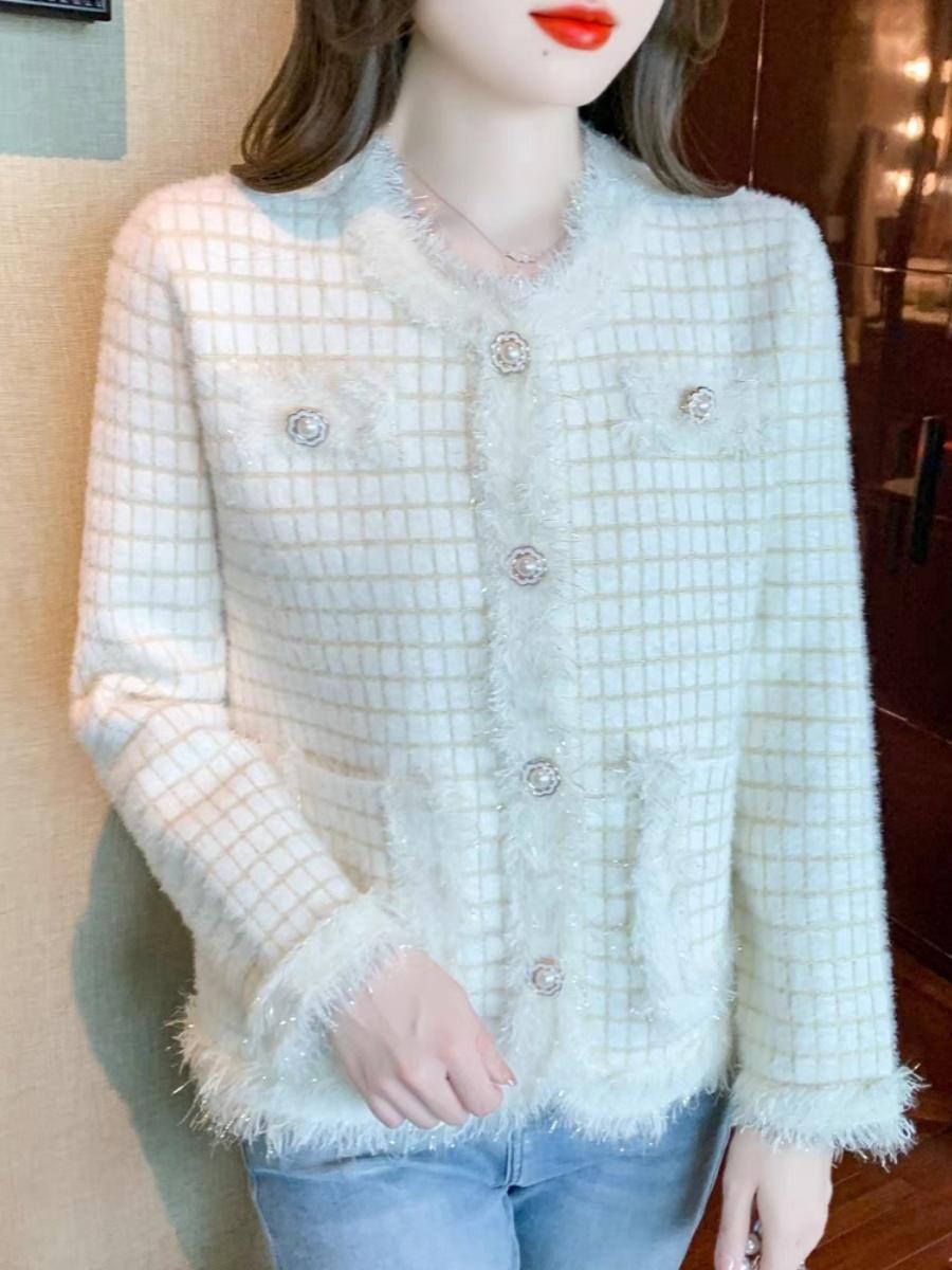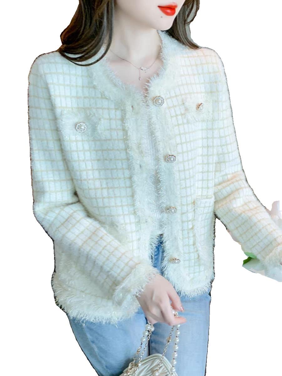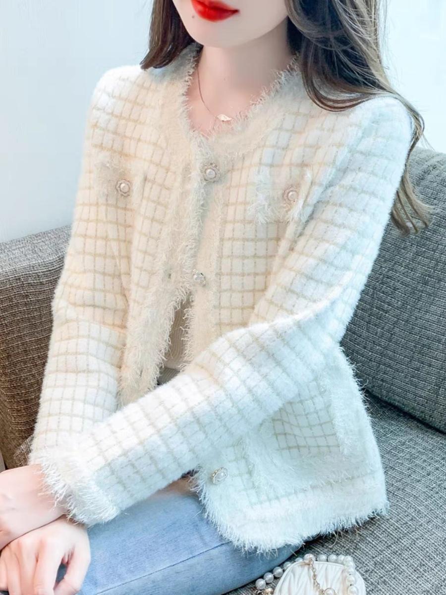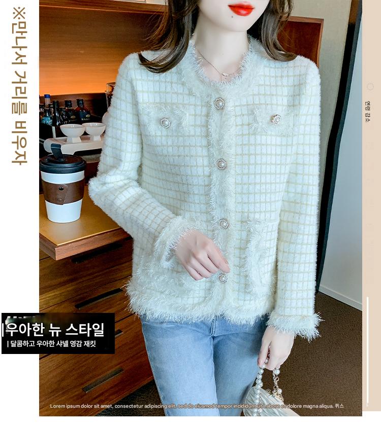 샤넬 스타일 라운드넥 카디건 재킷 여성용 봄 2025 가을 겨울 신스타일 하이엔드 슬리밍 패션 노화 방지 상의