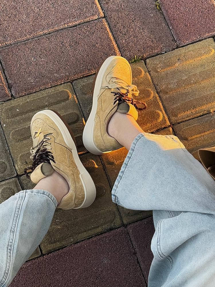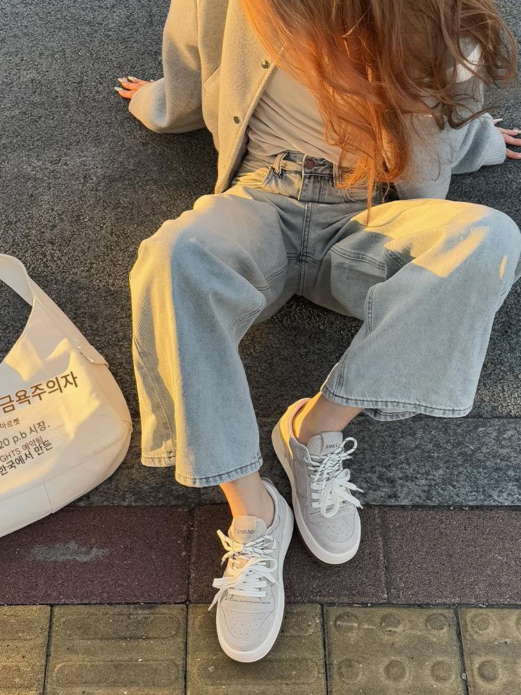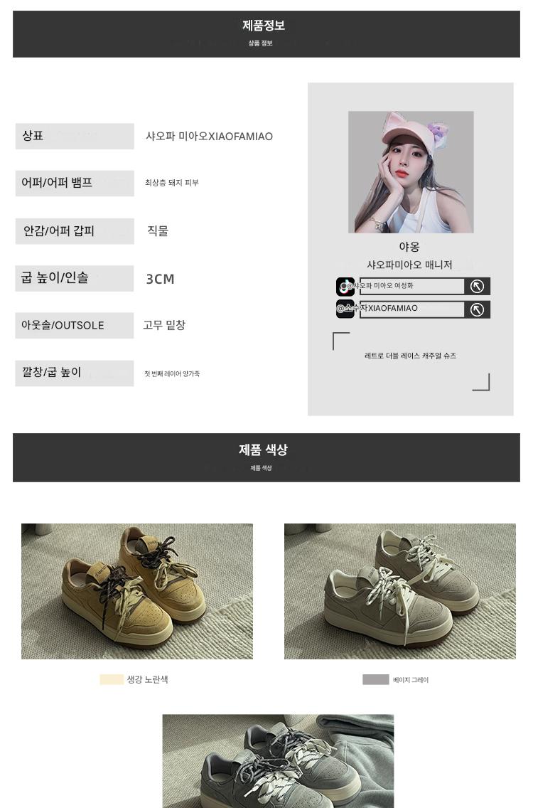 [샤오파 먀오] 정품 가죽 레트로 매트 두꺼운 밑창 스니커즈 여성용 2025년 봄 다재다능한 패션 스포츠 캐주얼화