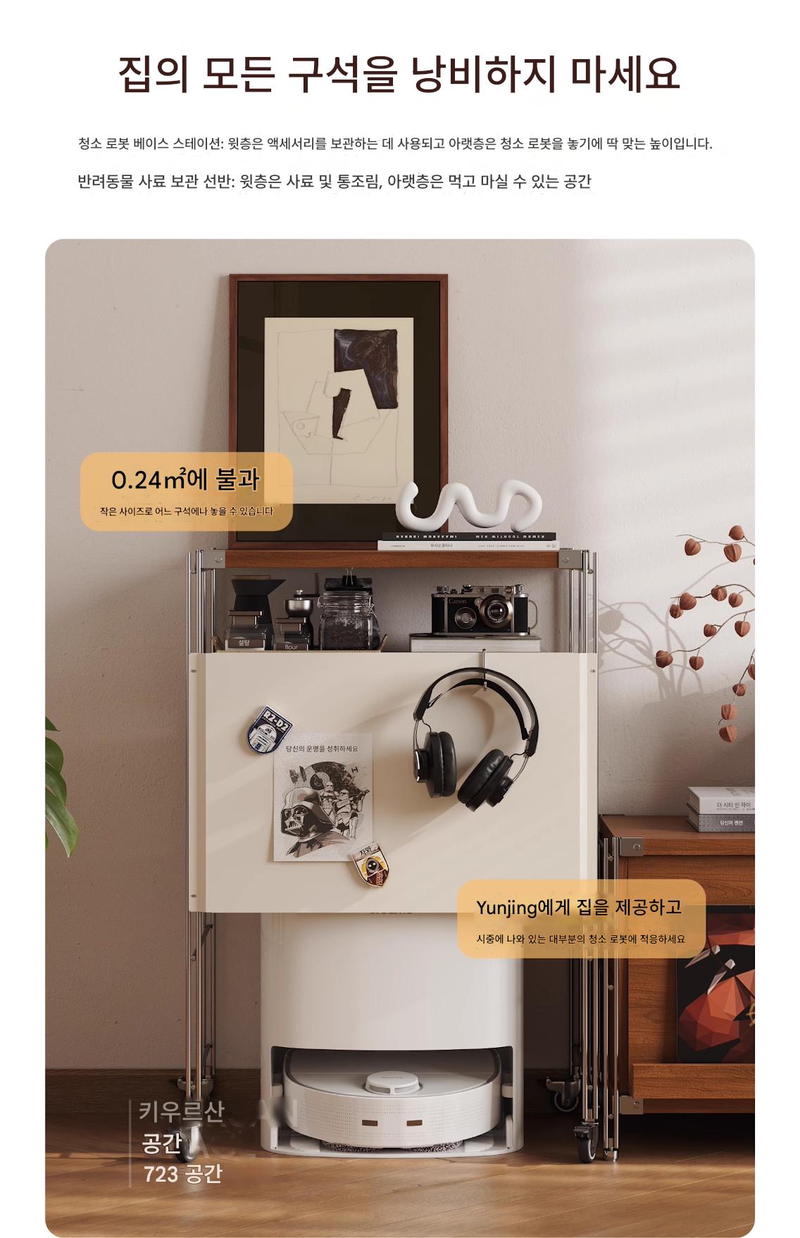 선반 위 청소 로봇 Yunjing 고양이 모래 트레이 사이드 테이블 소파 TV 수납 거실 스테인리스 스틸