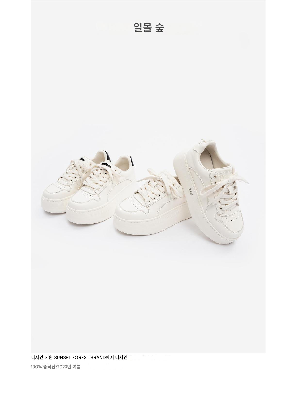 선셋 포레스트 정품 가죽 화이트 슈즈 여성용 올매치 2025 봄 신상 두꺼운 밑창 캐주얼 스포츠화 키 키우기 슈즈