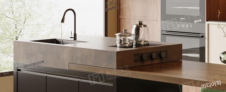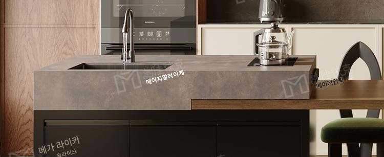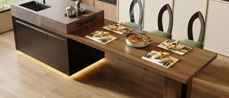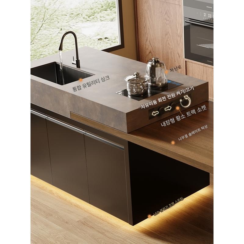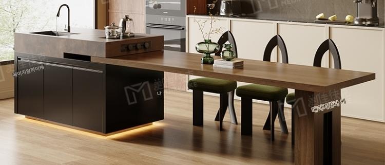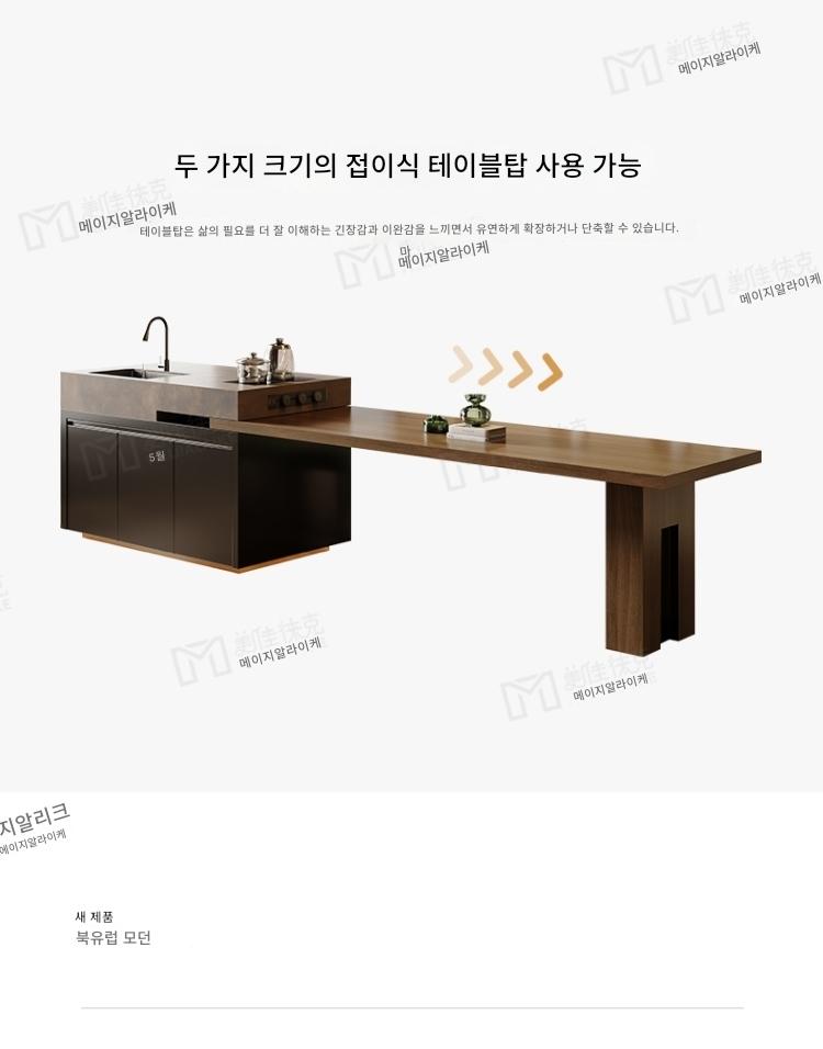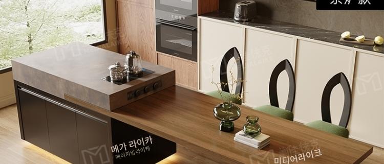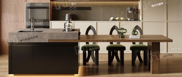 섬 테이블 식탁 통합 가정용 목재 그레인 록 플레이트 앤틱 스타일 섬 테이블 사용자 정의 가능한 접이식 오픈 키친 다운