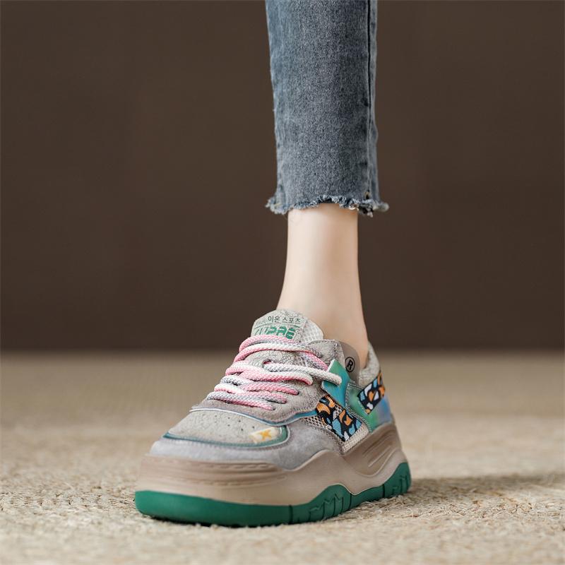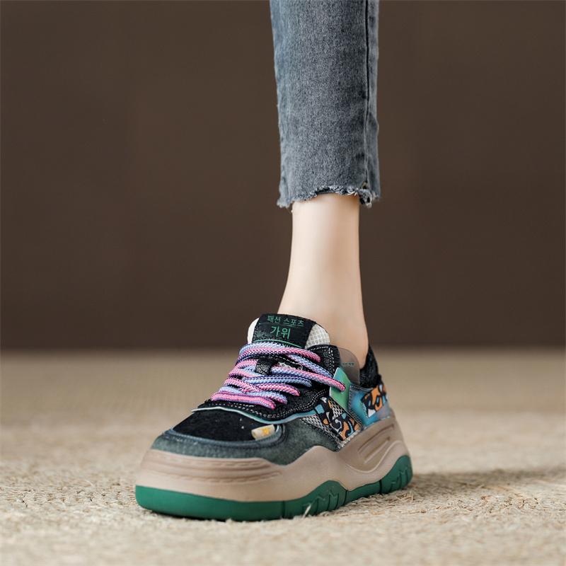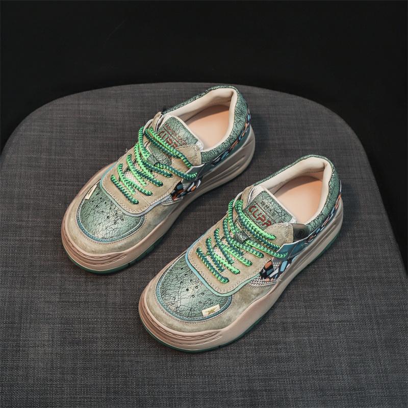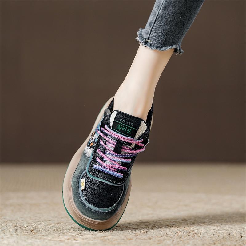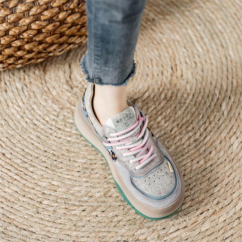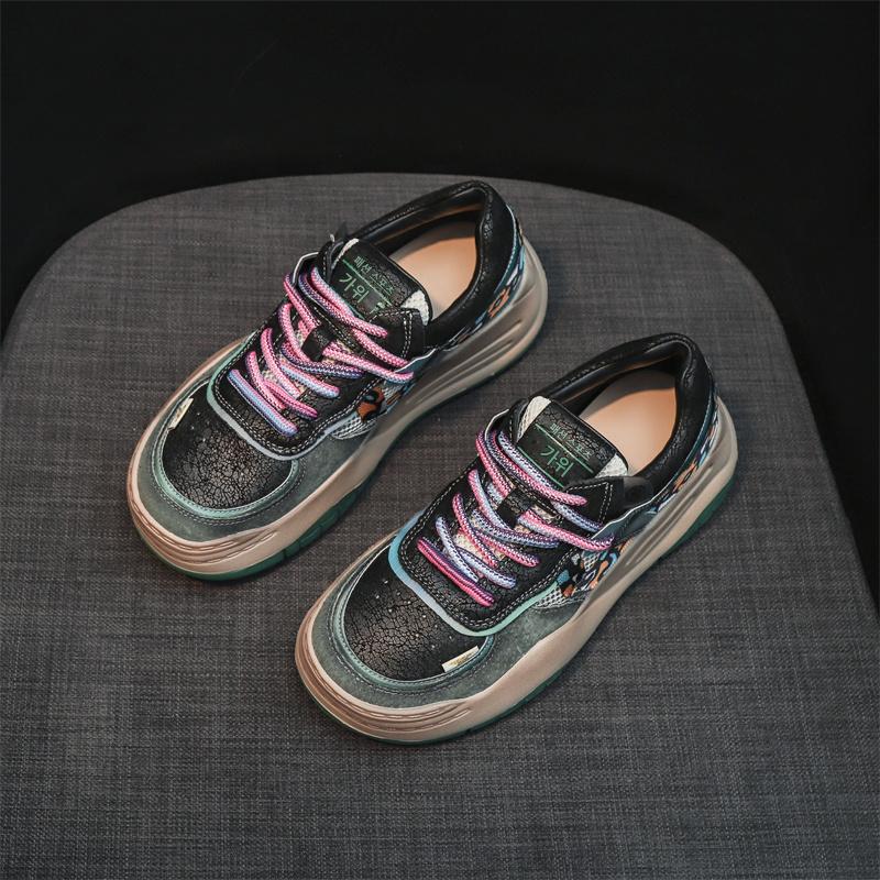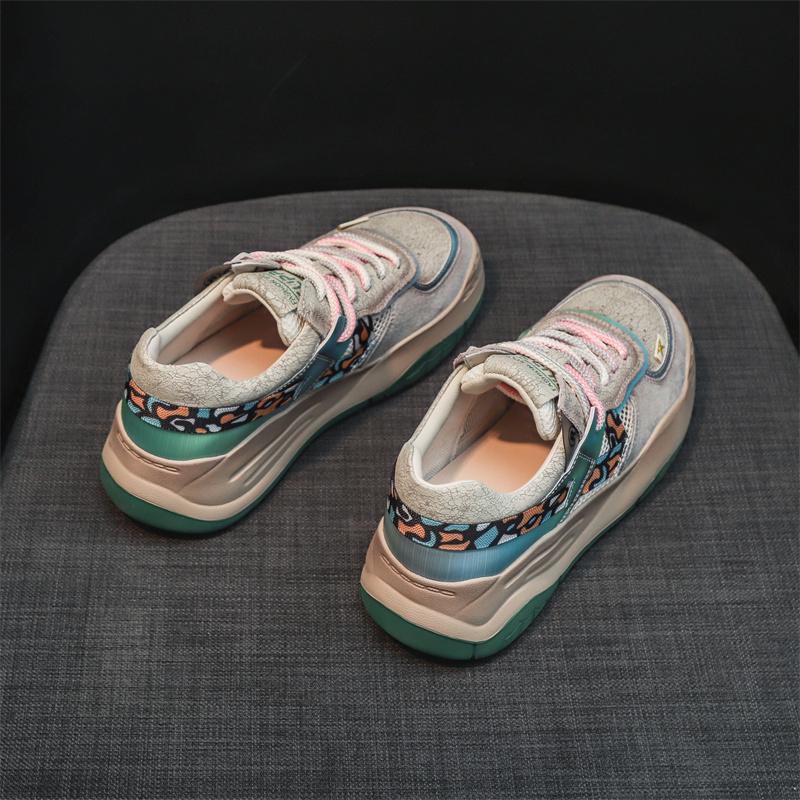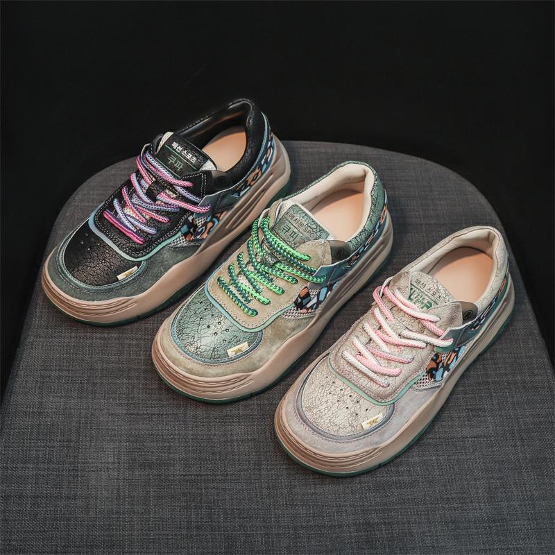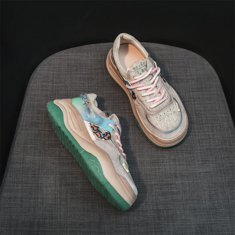 소가죽 레트로 컬러풀 두꺼운 밑창 여성화 2024 봄 가을 신상 정품 가죽 다재다능한 싱글화 틈새 캐주얼 스포츠화