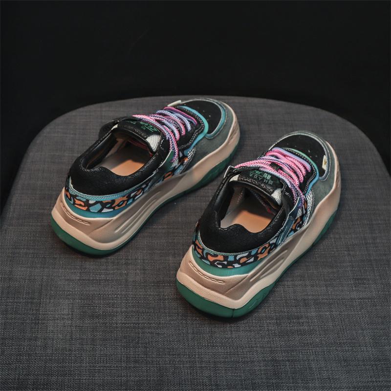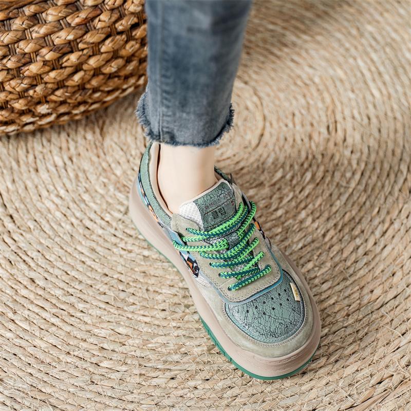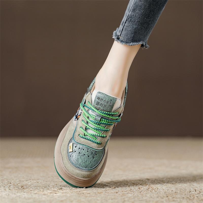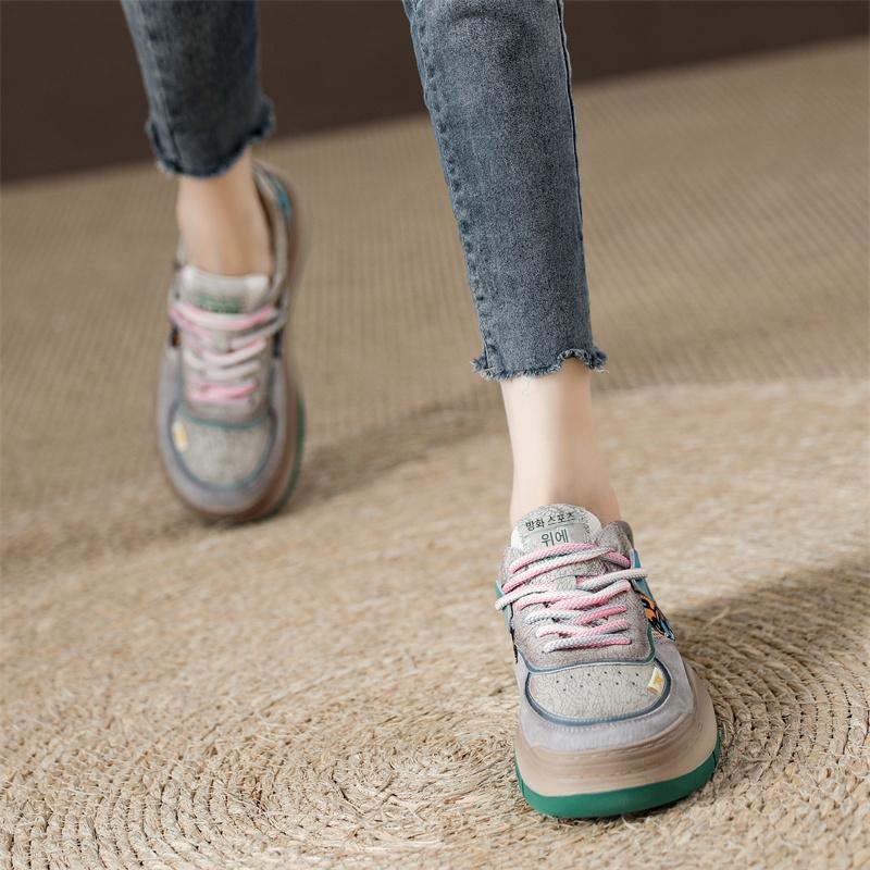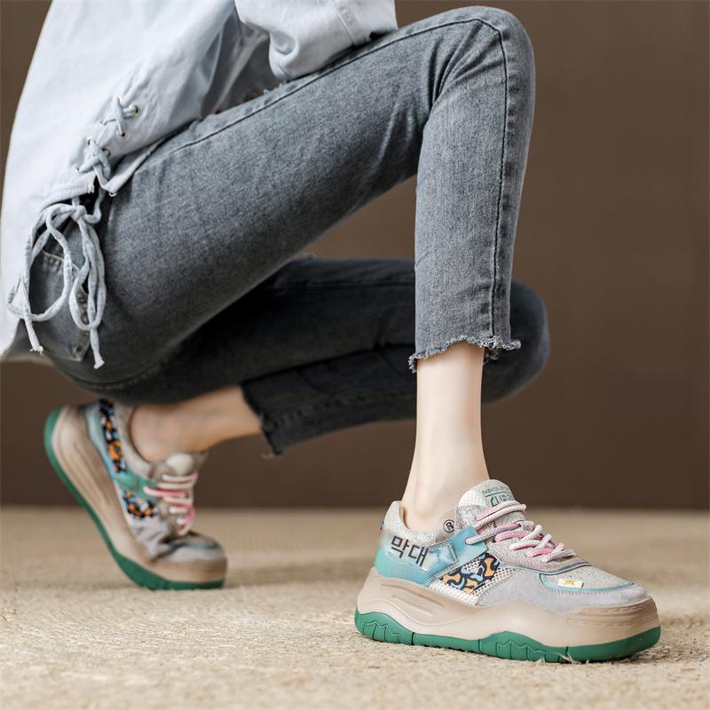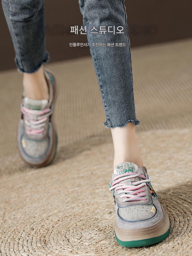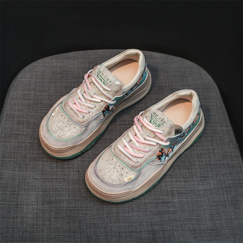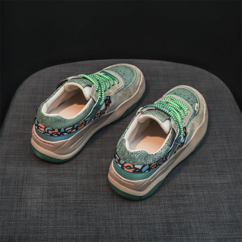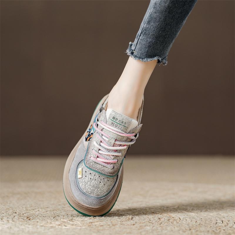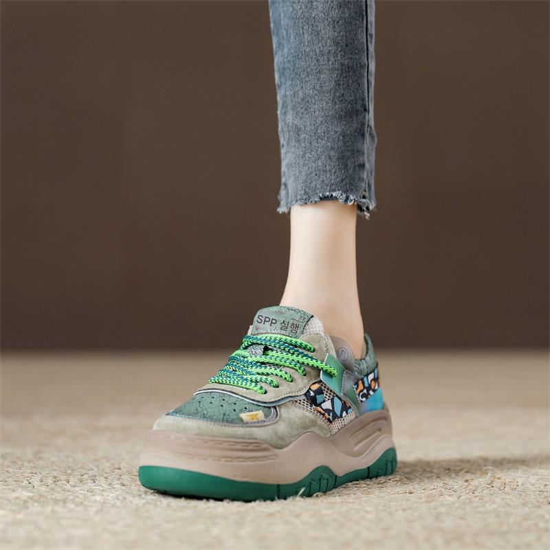 소가죽 레트로 컬러풀 두꺼운 밑창 여성화 2024 봄 가을 신상 정품 가죽 다재다능한 싱글화 틈새 캐주얼 스포츠화