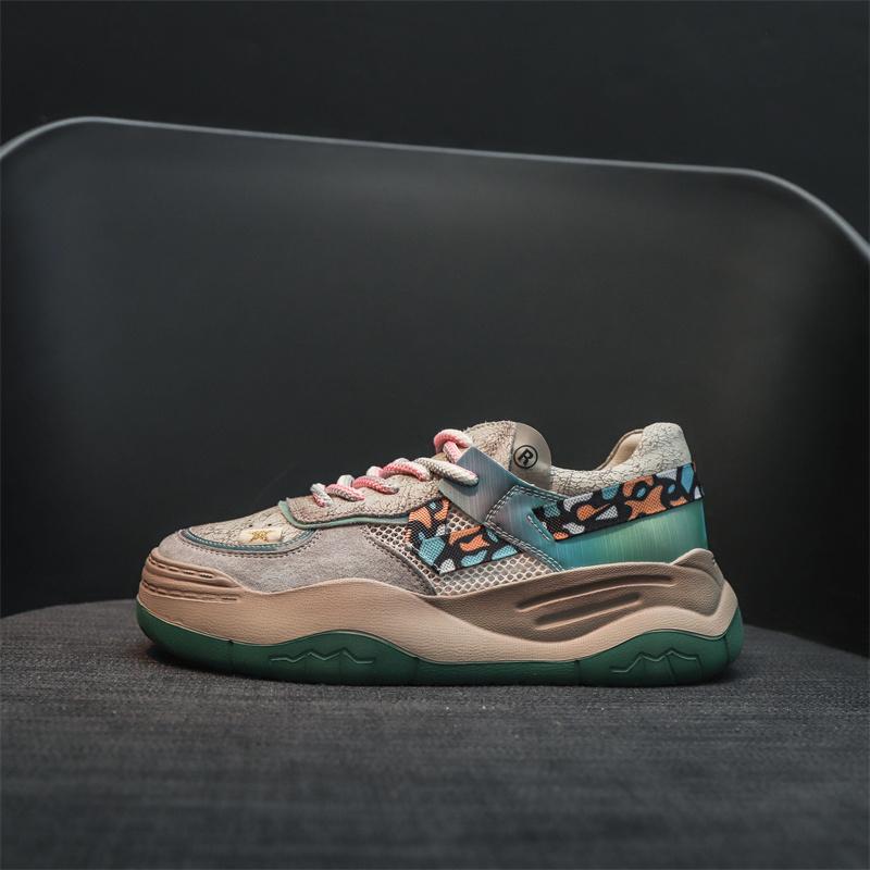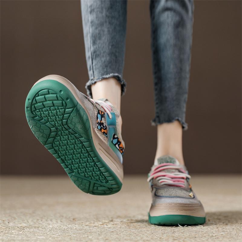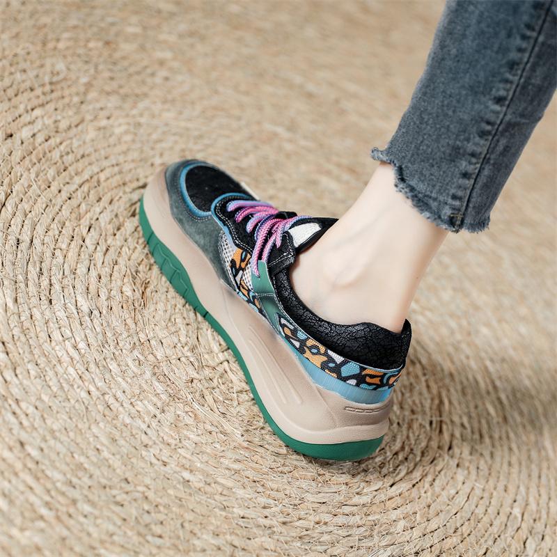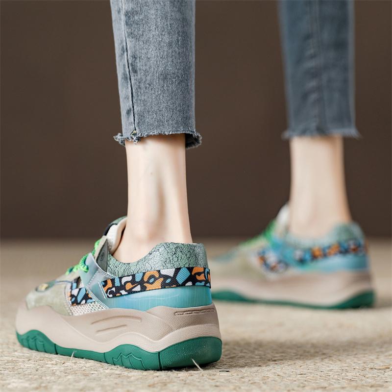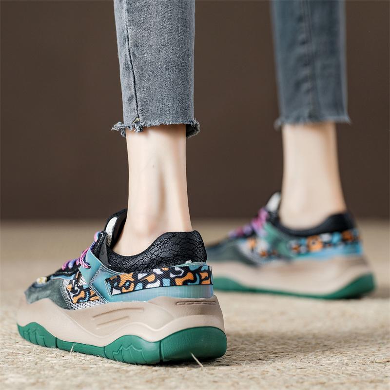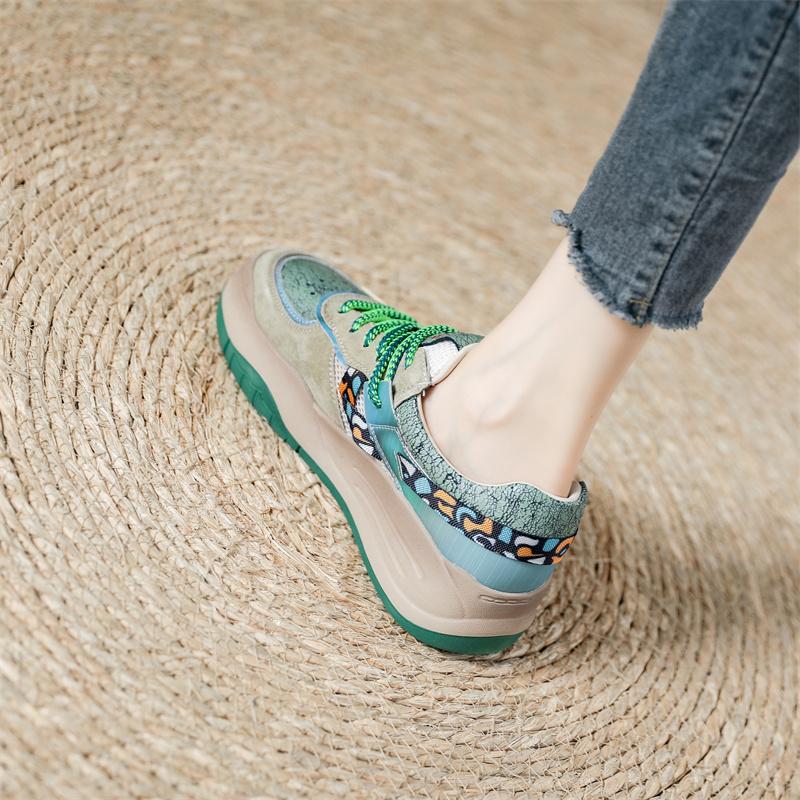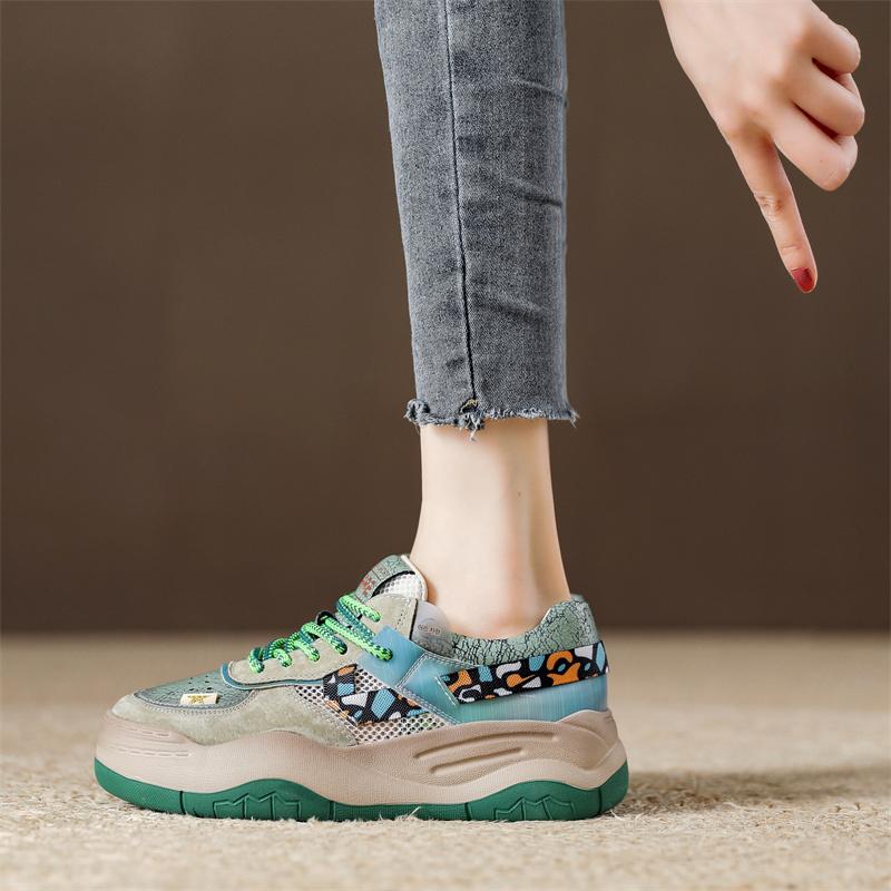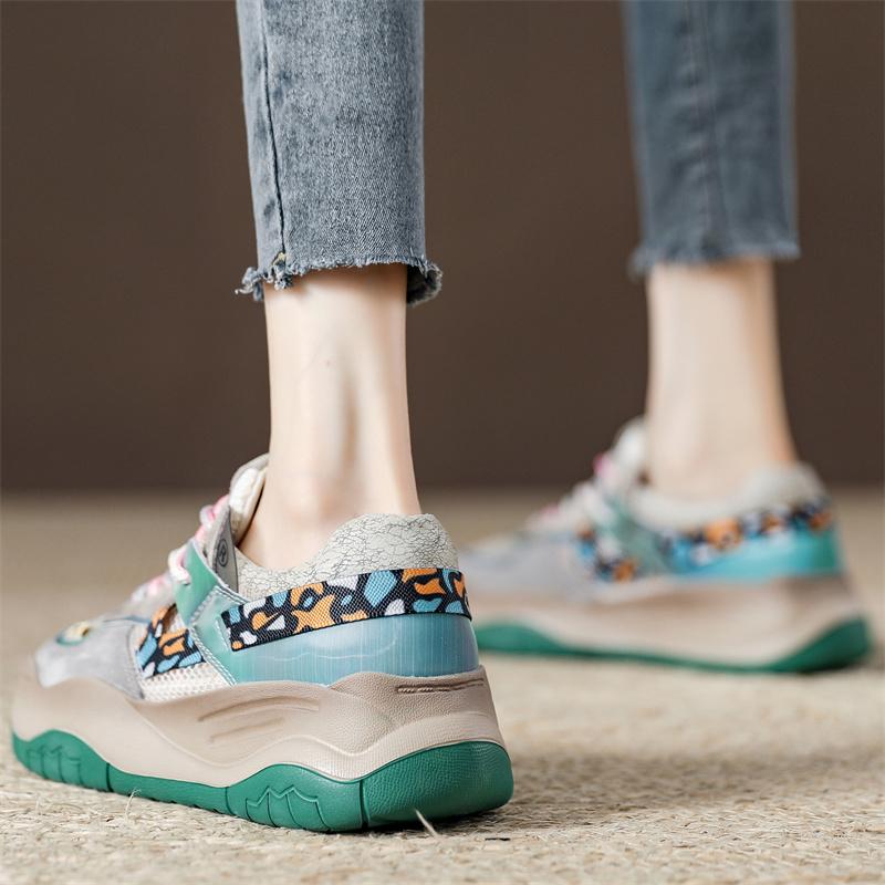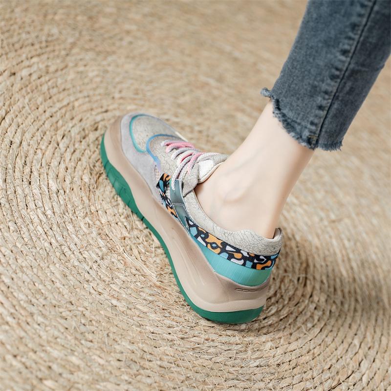 소가죽 레트로 컬러풀 두꺼운 밑창 여성화 2024 봄 가을 신상 정품 가죽 다재다능한 싱글화 틈새 캐주얼 스포츠화