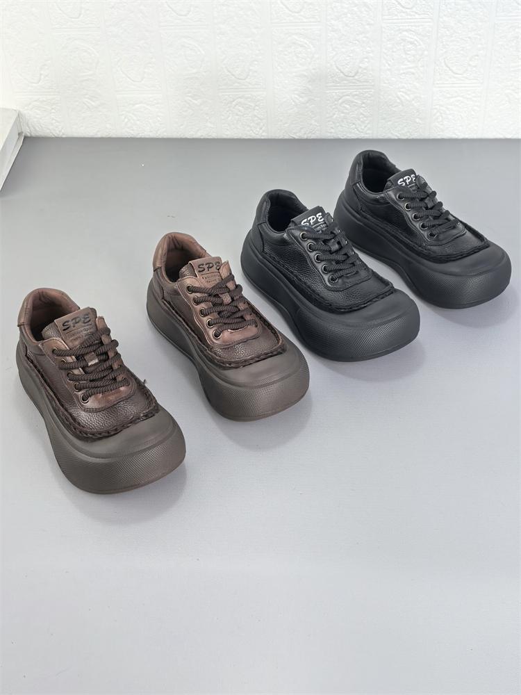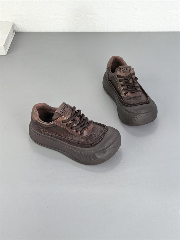 소가죽 레트로 플랫폼 슈즈 여성화 2025년 봄 신상 두꺼운 밑창 못생긴 큰 머리 슈즈 가벼운 스포츠 캐주얼 슈즈