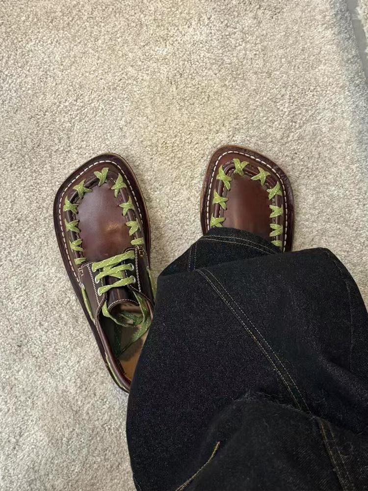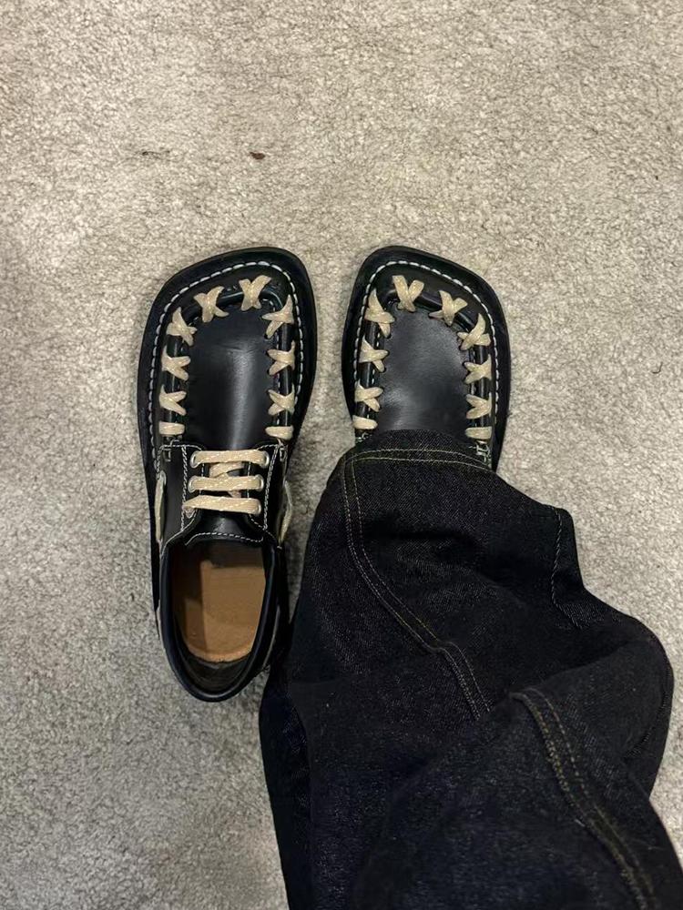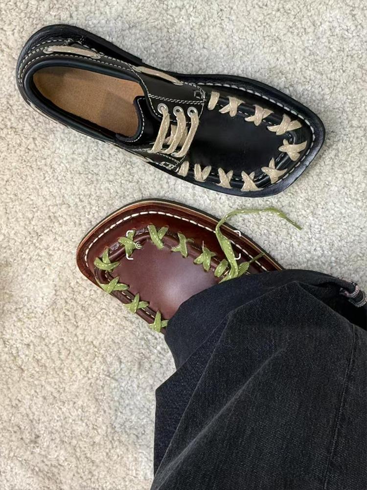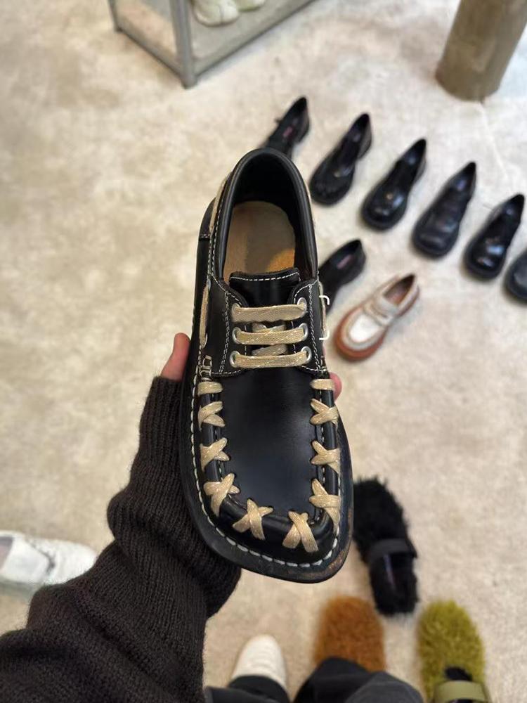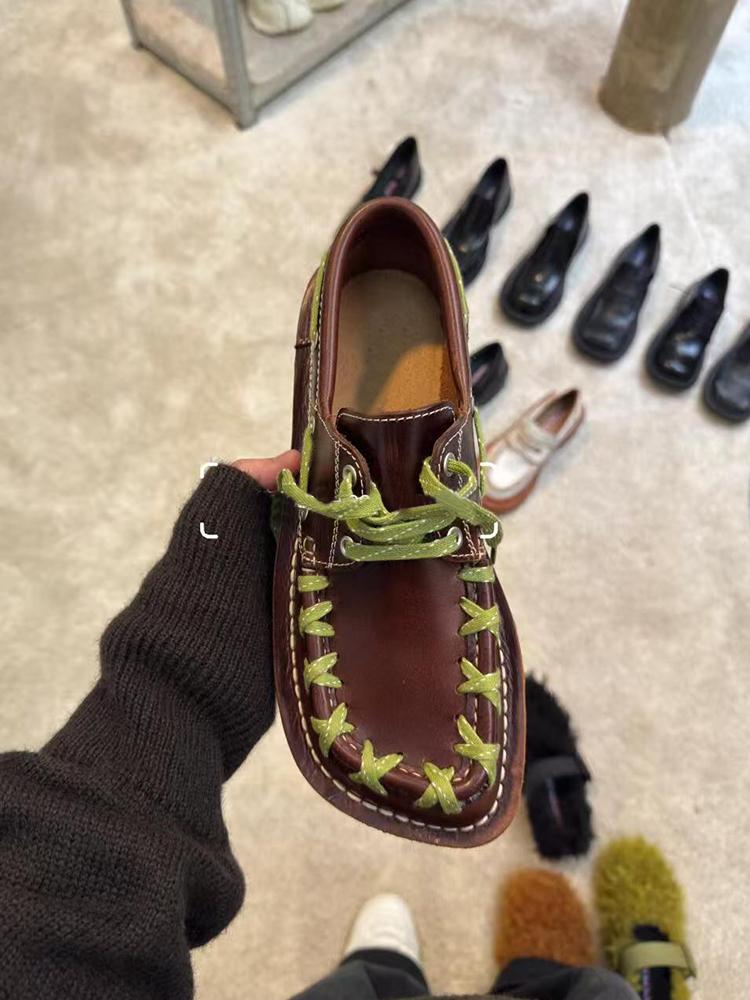 소가죽 버전 ~ 파리 레트로 스퀘어 헤드 로퍼 여성용 못생긴 귀여운 두두 슈즈 2025년 신상 영국 스타일 소형 가죽 슈즈