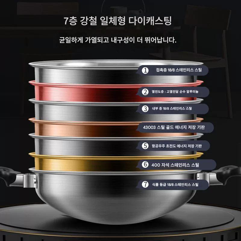 소노러스 암웨이 퀸팟 304 스테인리스 스틸 프라이팬 중국 가정용 무수냄비 노스틱 팬 대형 프라이팬