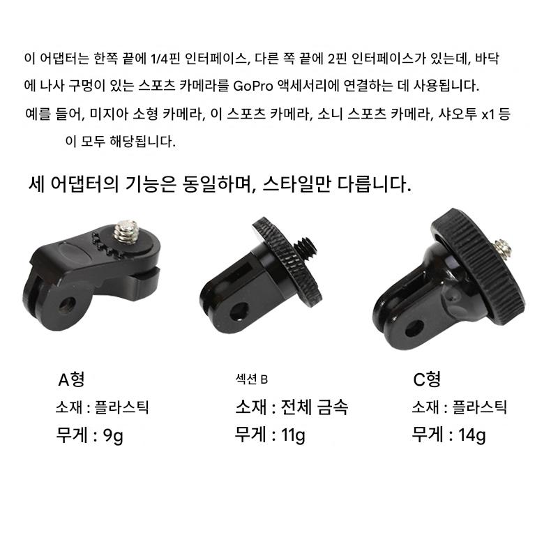 소니 샤오미 샤오이 4k 스포츠 카메라에 적합하며 고프로 액세서리 1/4 어댑터 셀카 스틱 변환 헤드를 연결할 수 있습니다.