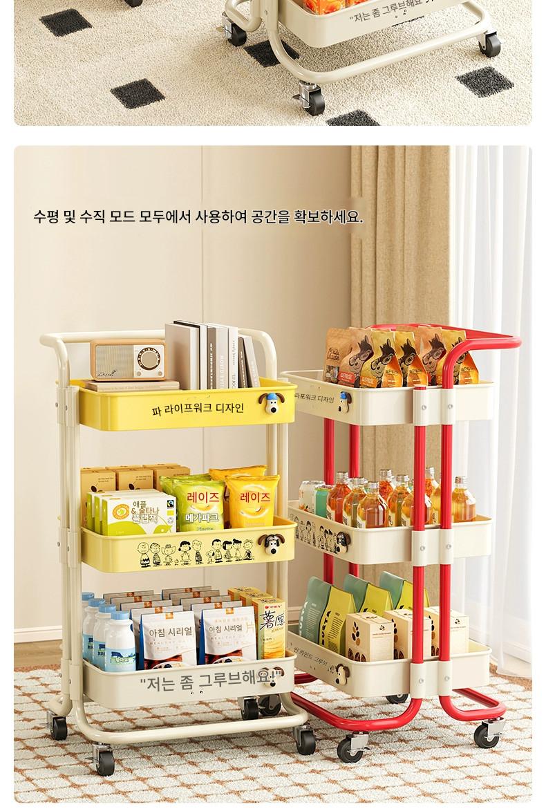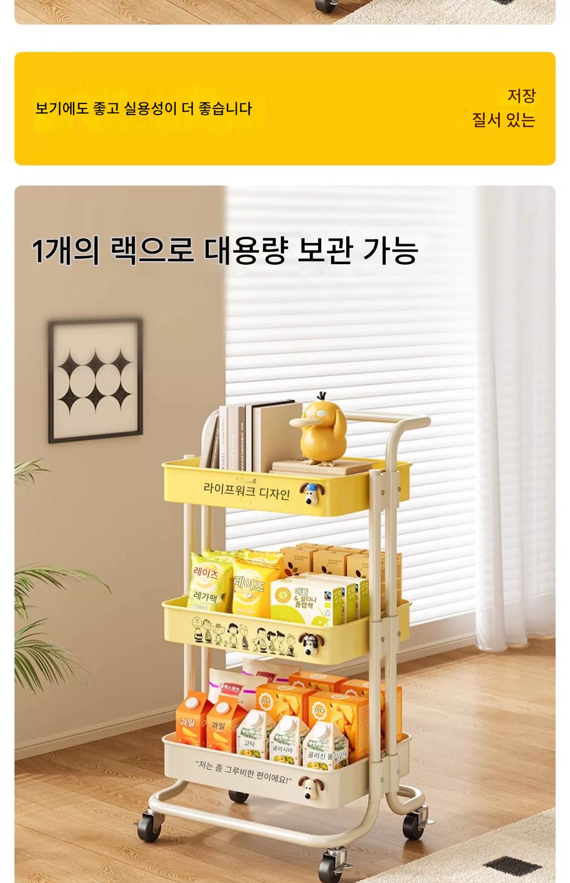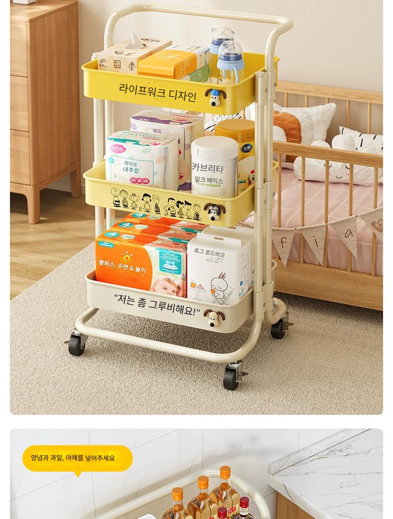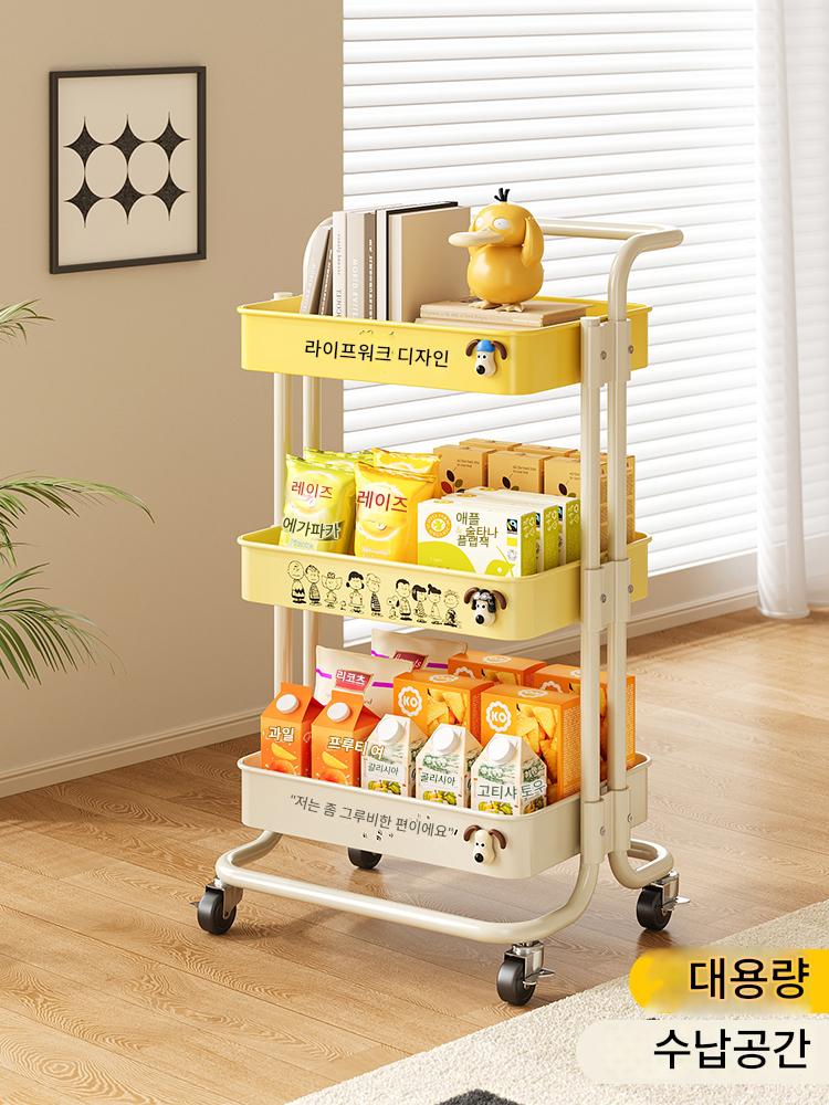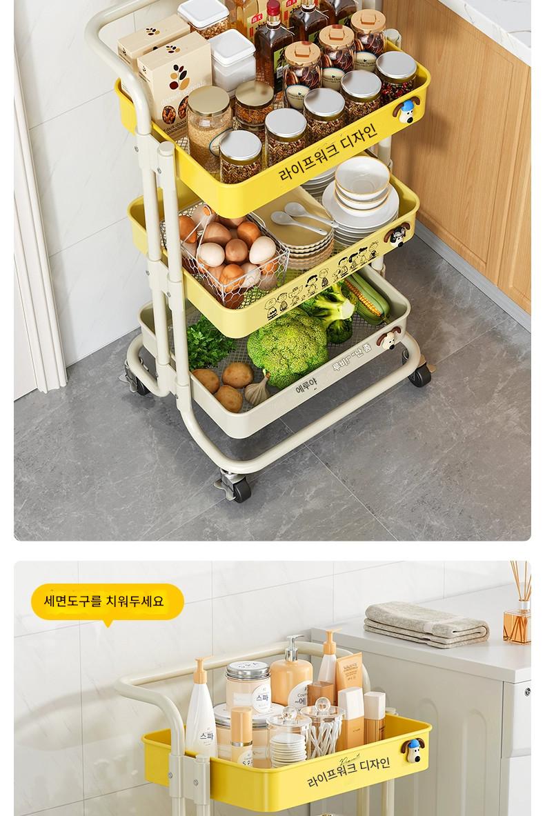 소형 트롤리 랙 간식 보관 랙 거실 주방 욕실 대용량 이동식 다층 바닥 보관 랙