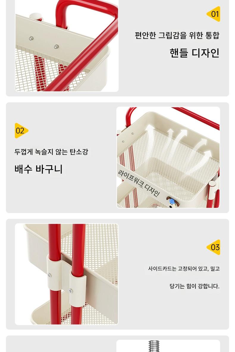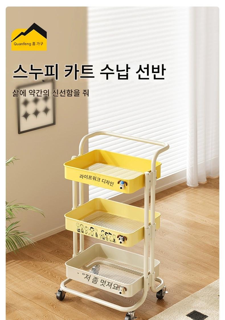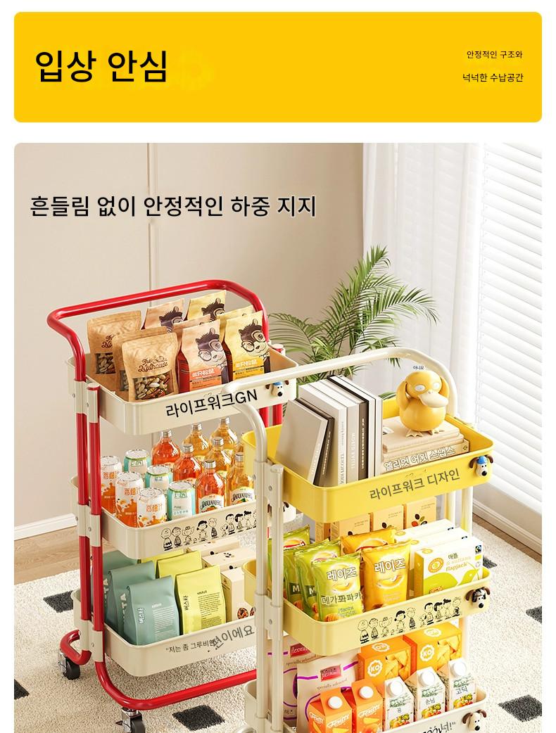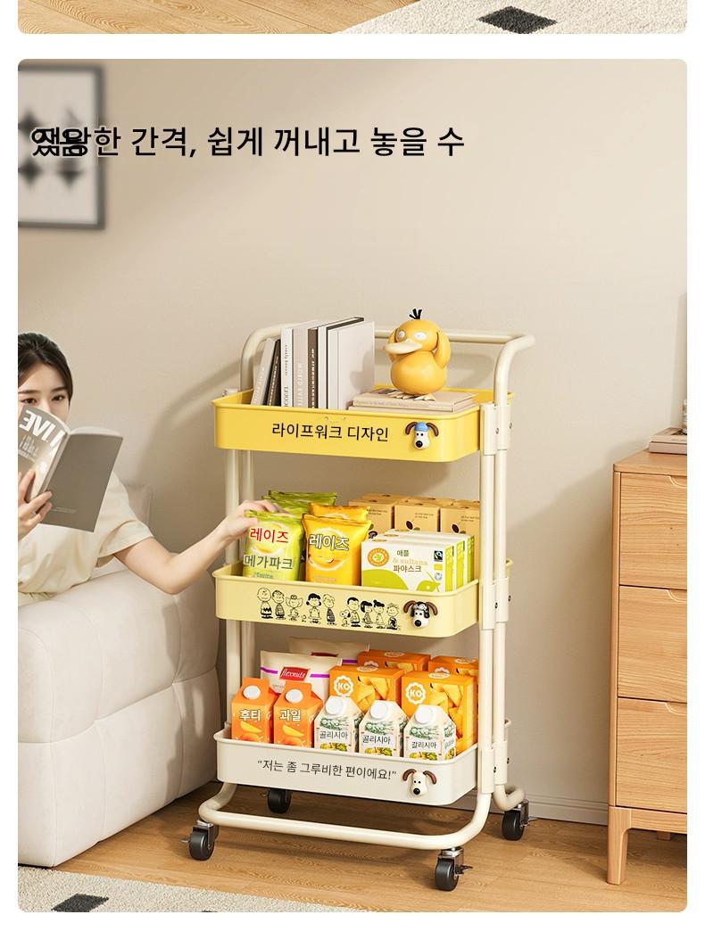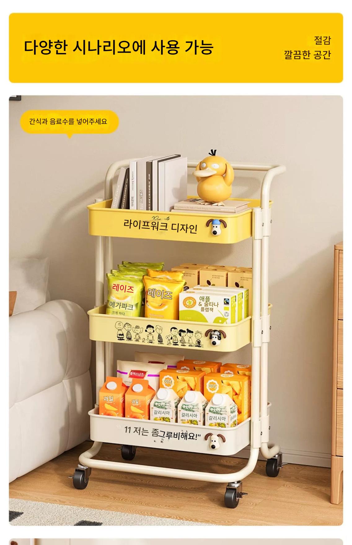 소형 트롤리 랙 간식 보관 랙 거실 주방 욕실 대용량 이동식 다층 바닥 보관 랙