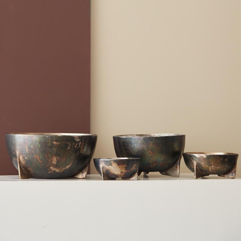 수입 알루미늄 레트로 오래된 새로운 중국 그릇 모양의 너트 트레이 장식품 모델 룸 금속 보관 장식품