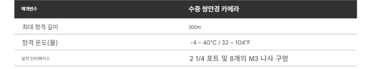 수중 쌍안경 카메라 동기화 동일 프레임 스티칭 수중 측정 ROV 시각적 장애물 회피 300m 방수 및 주행 불필요
