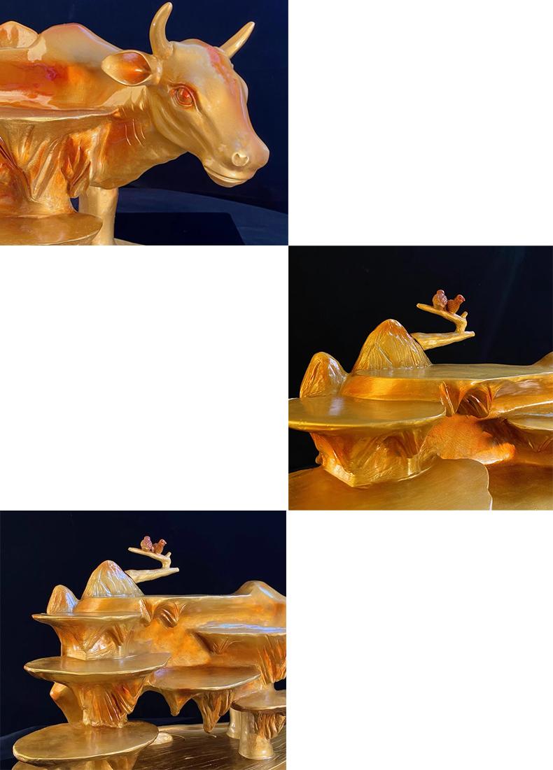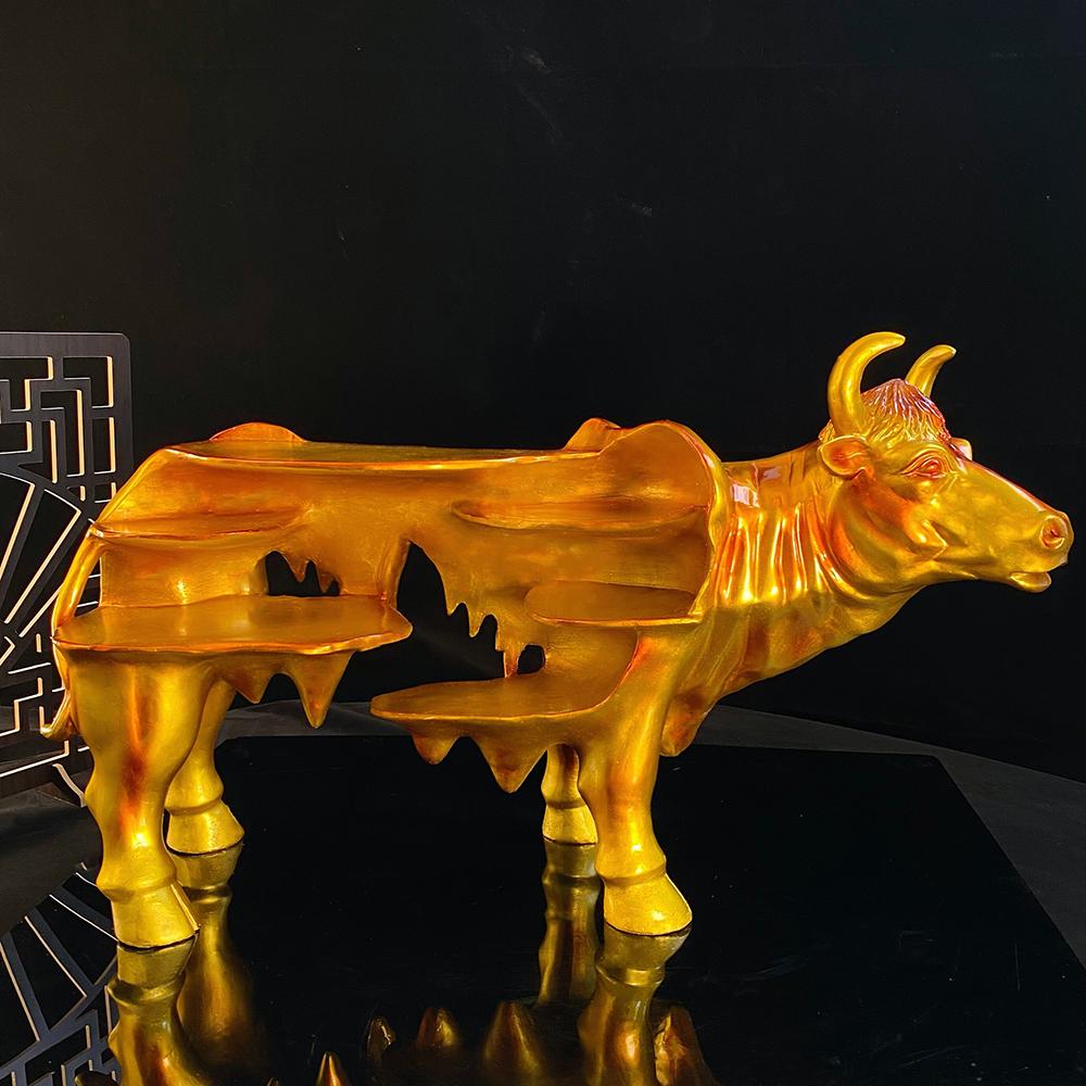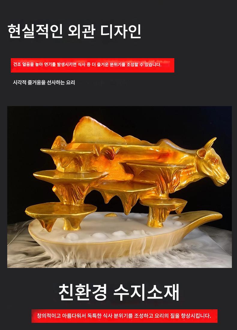 수지 골든 소 모양 드라이 아이스 특성 그물 레드 핫팟 레스토랑 크리에이티브 플레이트 바베큐 예술적 컨셉 소 모양 테마 식기