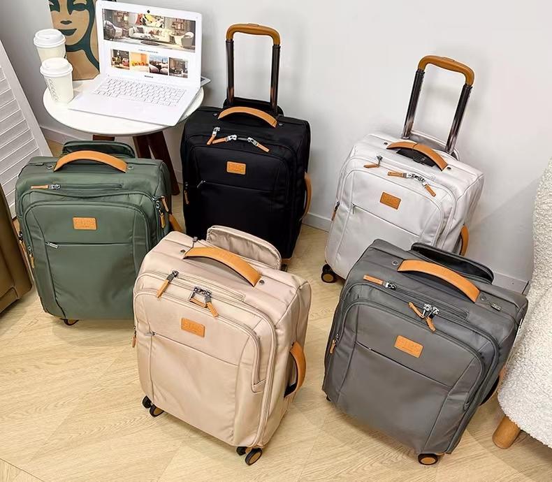 수출 신품 초경량 20인치 옥스포드 천 탑승 수하물 다기능 체크 트롤리 케이스 대용량 여행 가방