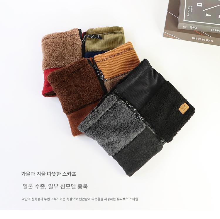 수출 일본 싱글 가을과 겨울 따뜻한 스카프 남성과 여성 패션 플러스 벨벳 지퍼 목 커버 여성 야외 방풍 목 스카프