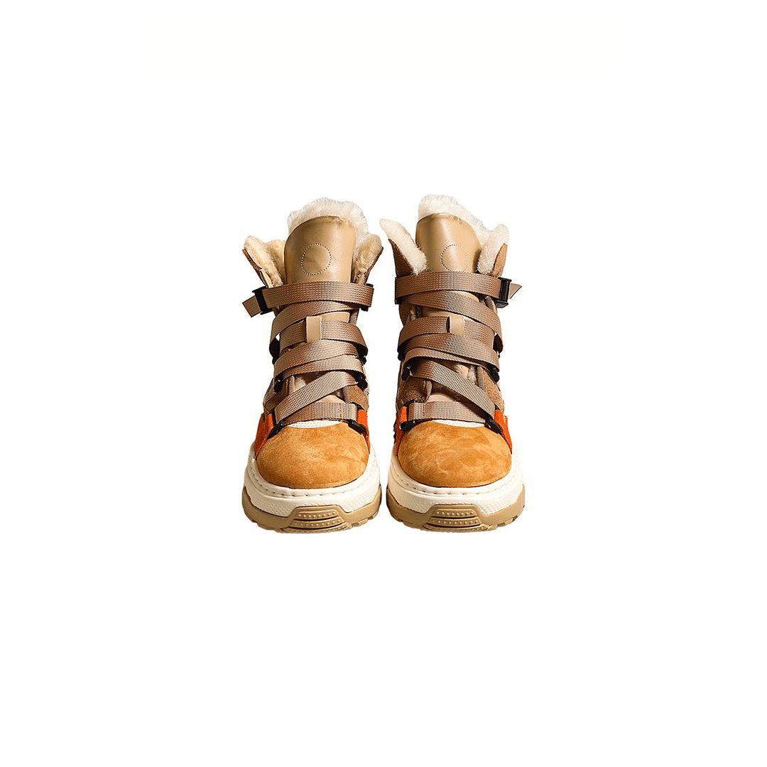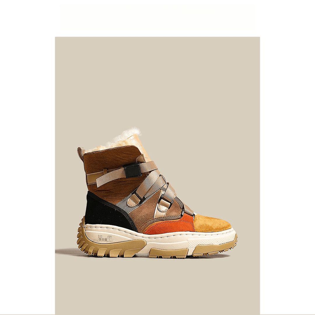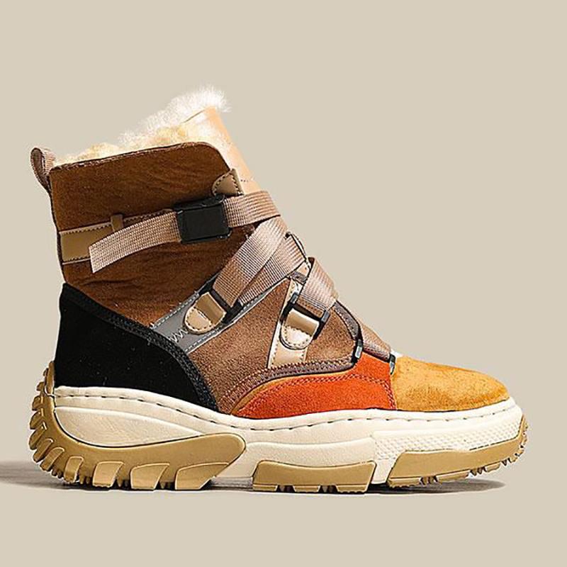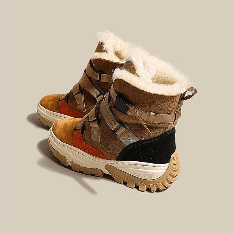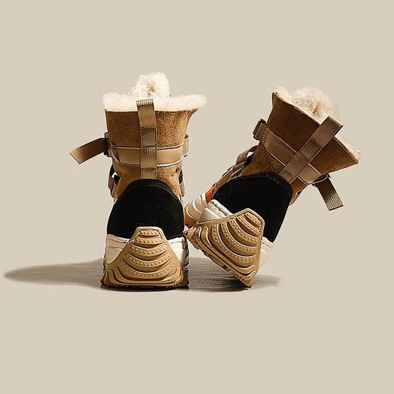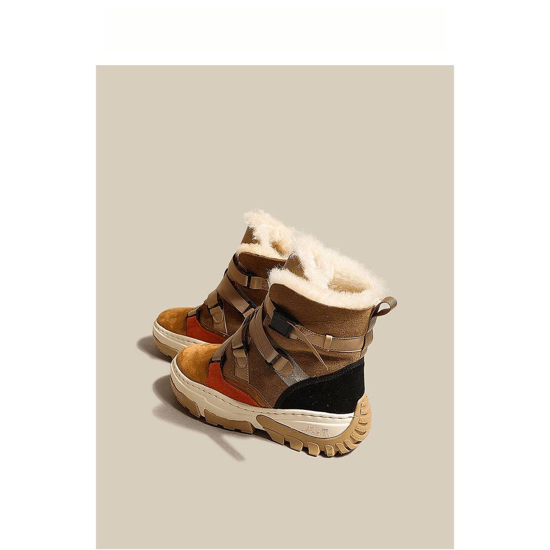 순수 양모 스노우 부츠 여성용 겨울 2024년 신스타일 두꺼워진 두꺼운 따뜻한 면화 신발 스타일리시한 가죽 및 모피 스노우 부츠