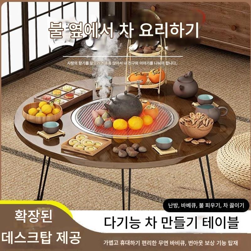 숯불 바베큐 빌라 야외 티스토브 스토브 바베큐 테이블 그릴 불 숯불 안뜰 겨울 티세트