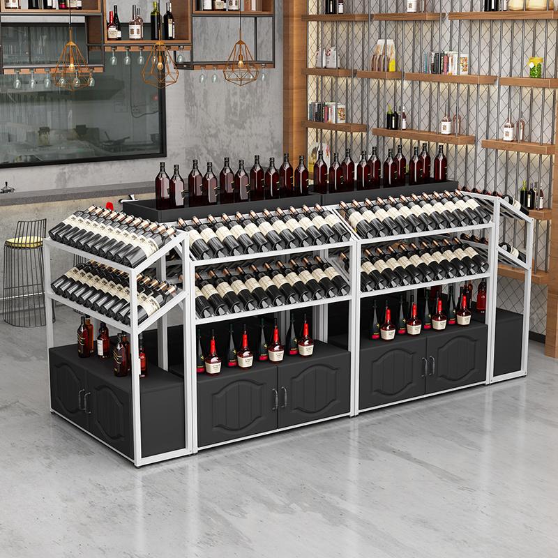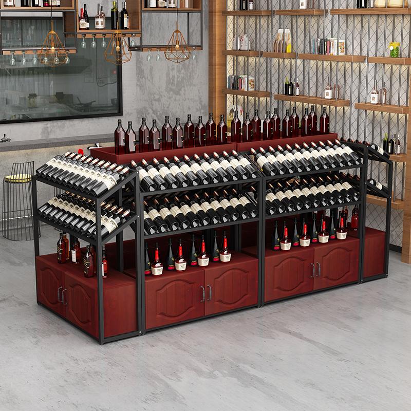 슈퍼마켓 레드 와인 캐비닛 아일랜드 와인 랙 와이너리 와인 및 주류 디스플레이 랙 바닥 레드 와인 랙 조합 와인 선반