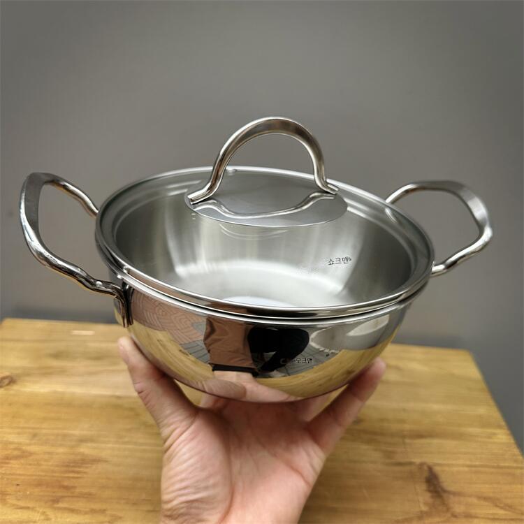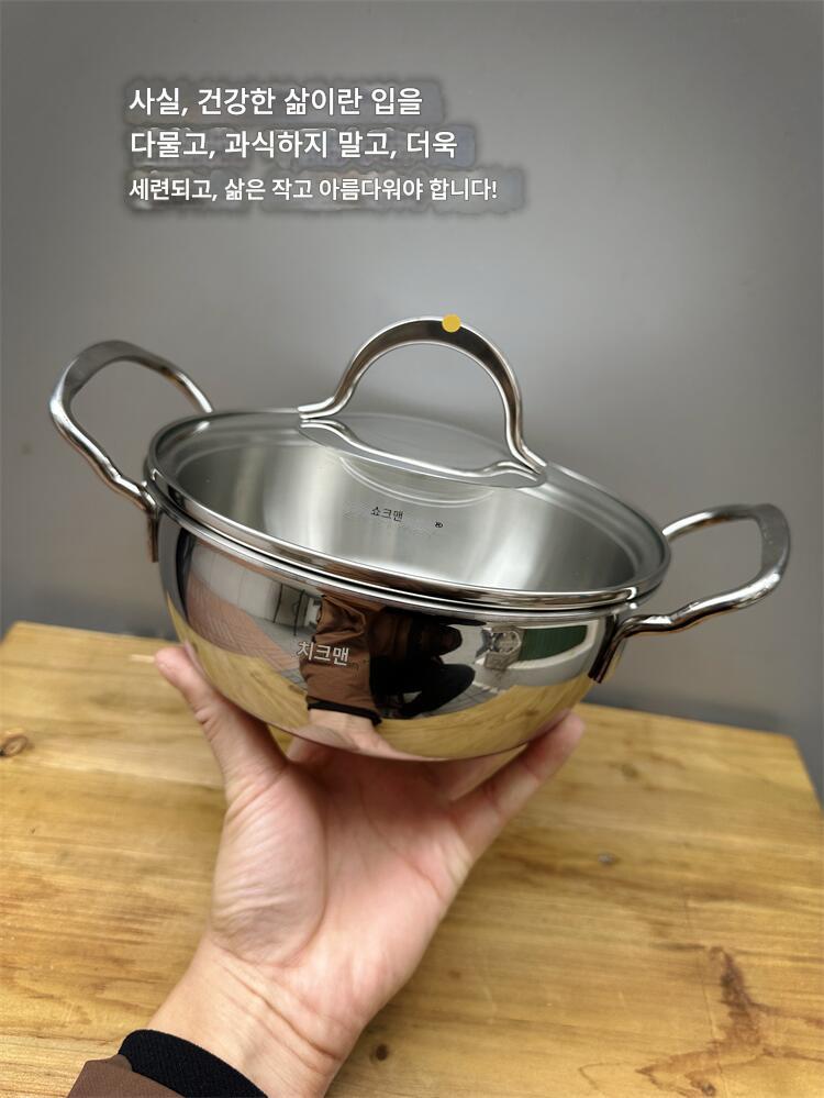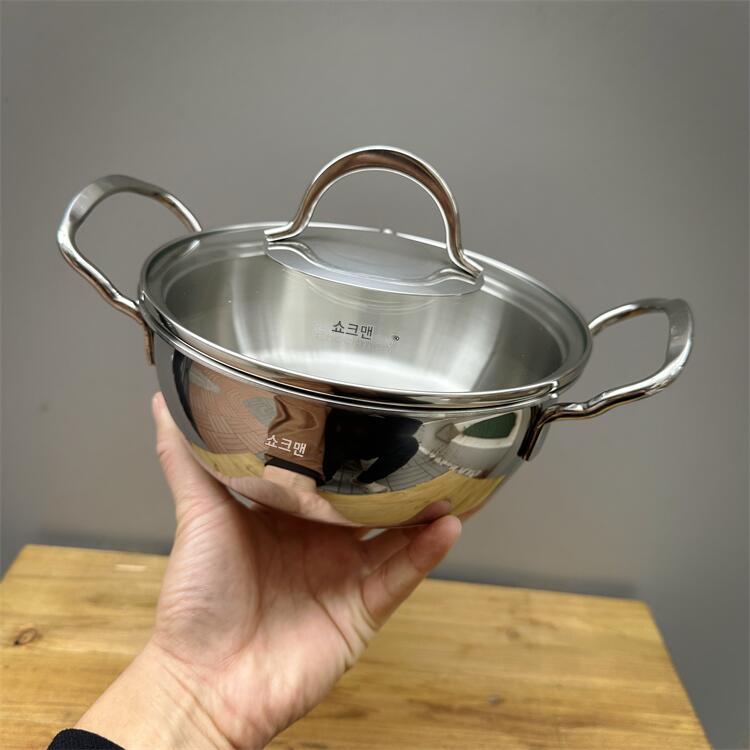스낵 라면 냄비 18/10 스테인리스 스틸 수프 냄비 깊은 이중 귀 인스턴트 국수 냄비 레스토랑 국수 냄비 유도 쿠커 소형 쿠커