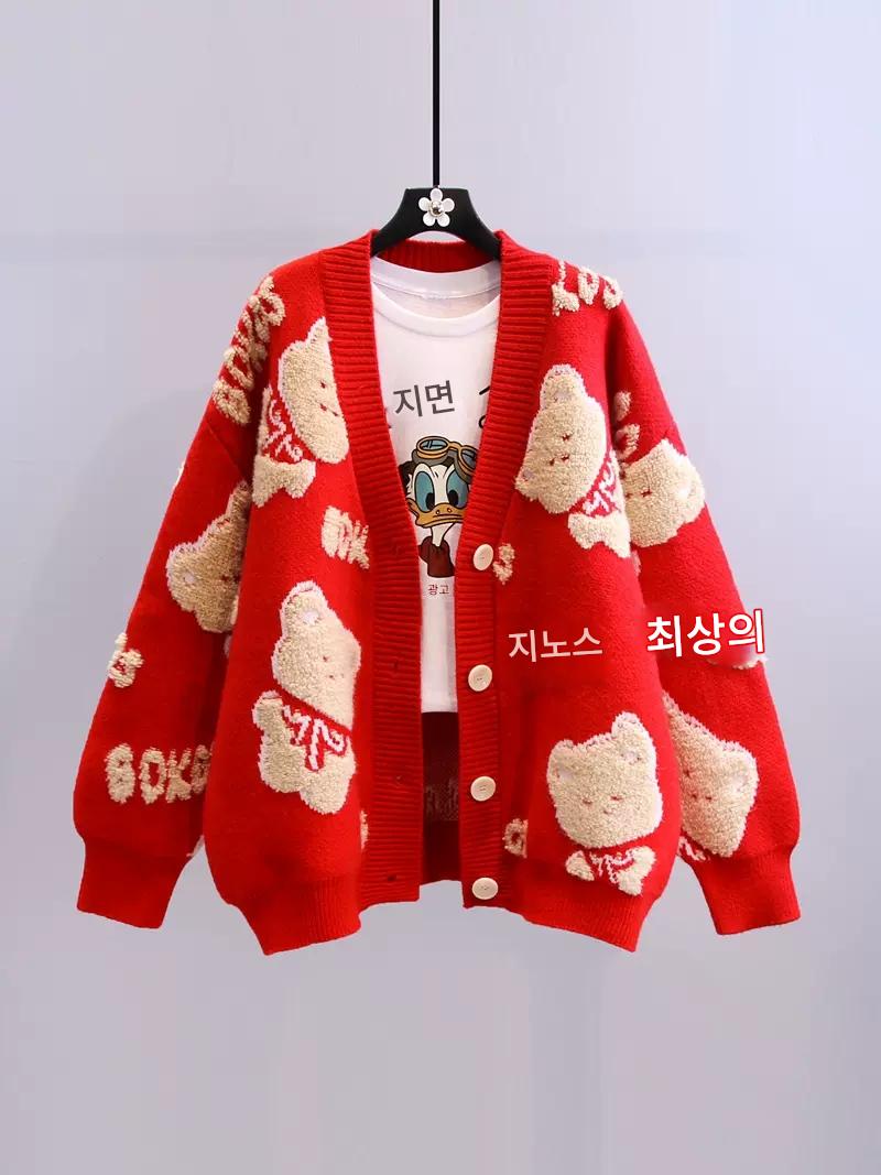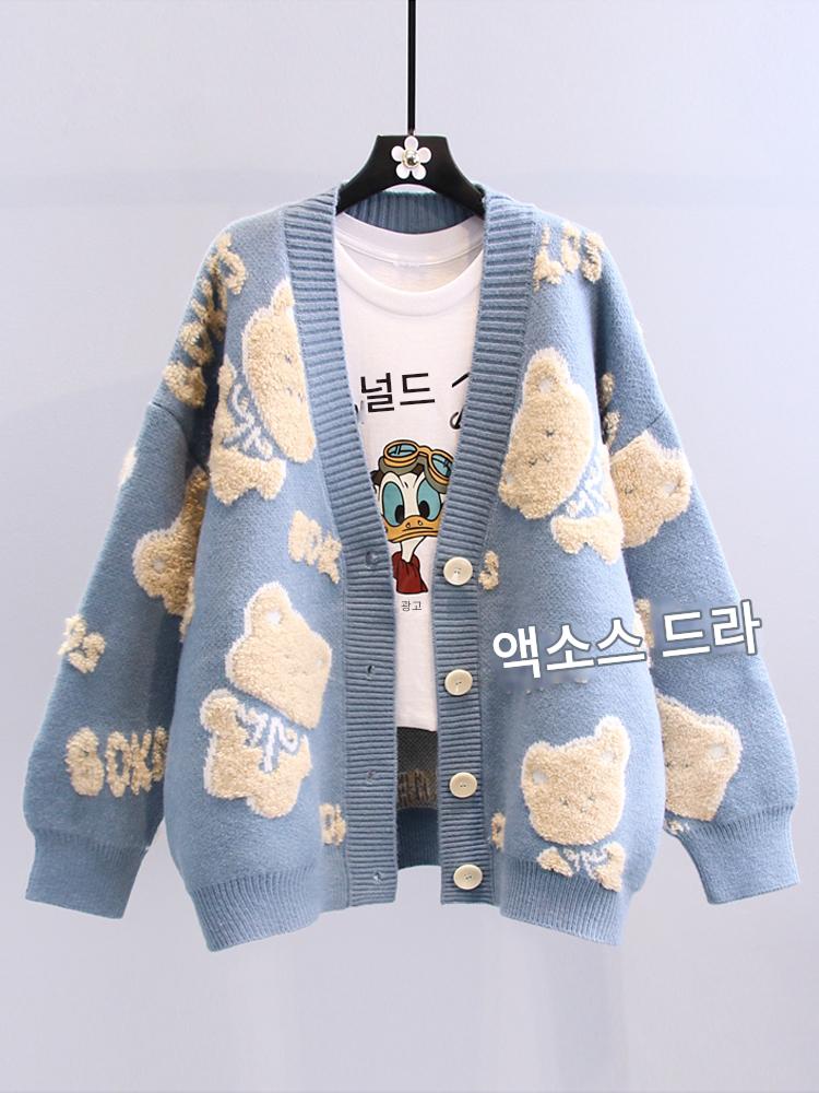 스웨터 재킷 여성 2025 가을과 겨울 새로운 한국 스타일 느슨한 느슨하게 스타일 아우터웨어 서양 스타일 긴 소매 니트 카디건 탑