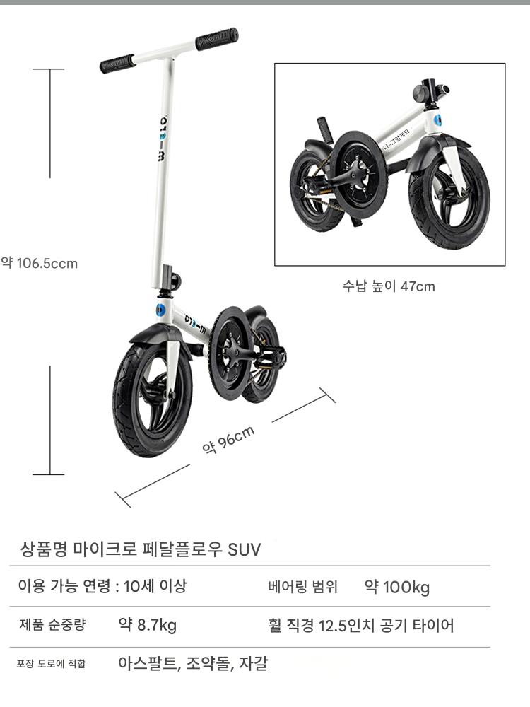 스위스 마이크로 페달플로우 마이구 성인 스탠딩 워킹 폴딩 페달 피트니스 스탠딩 자전거