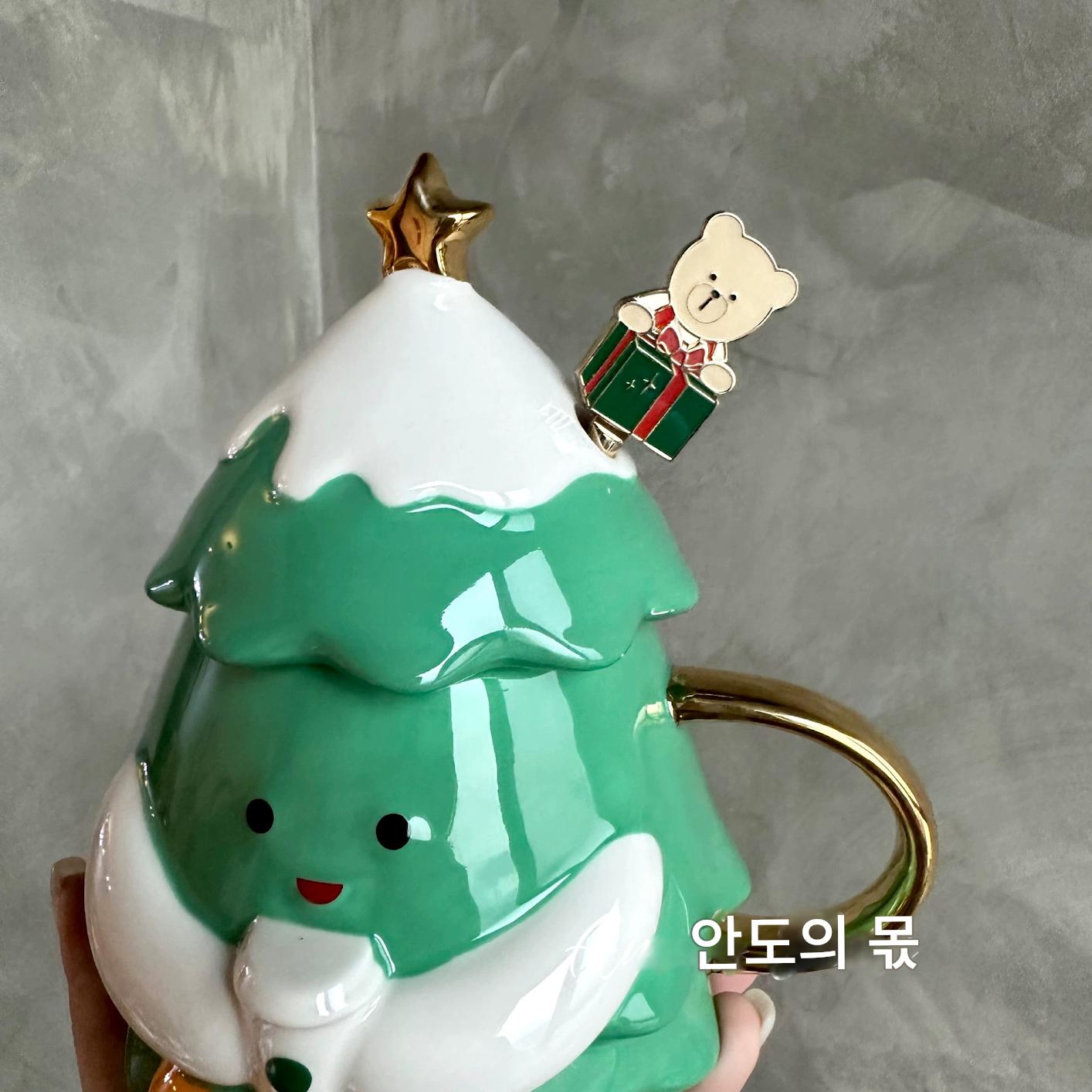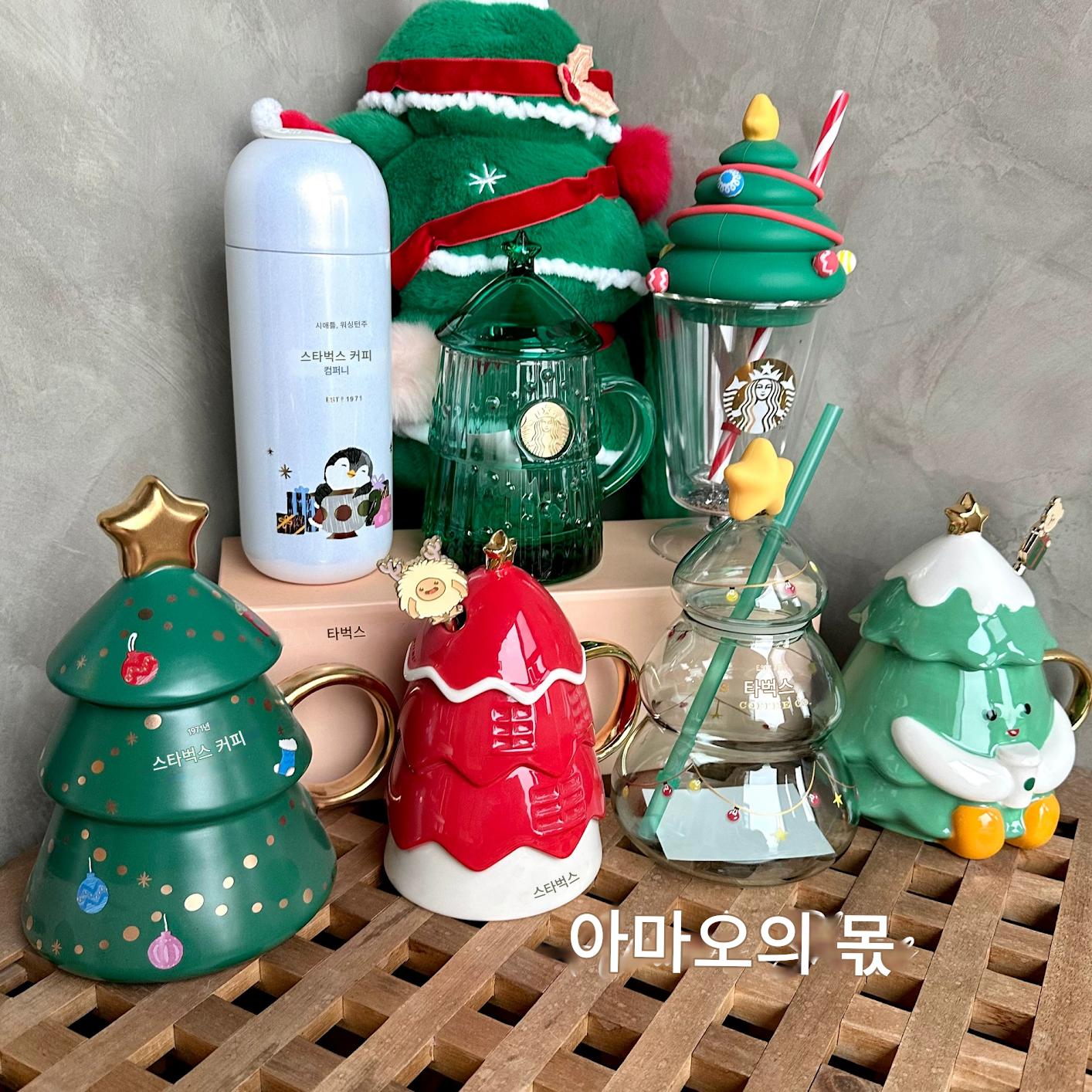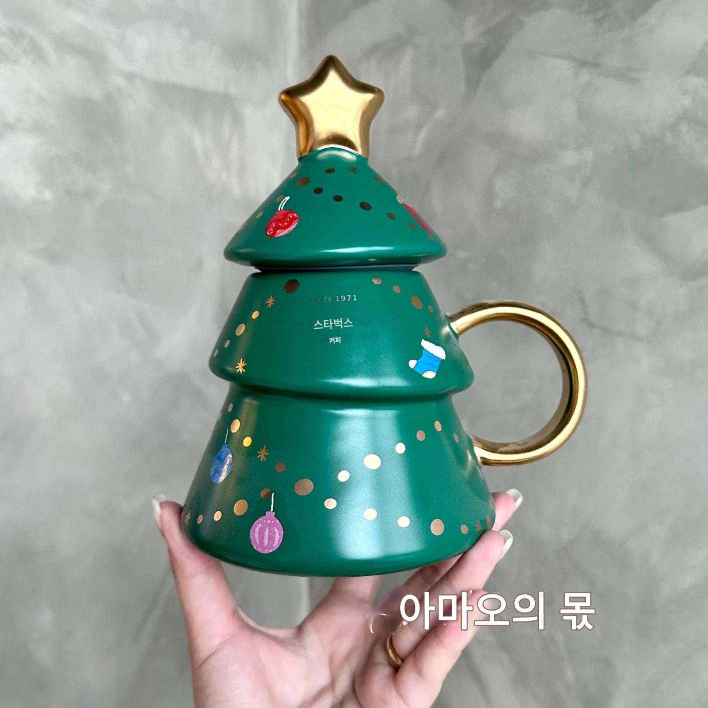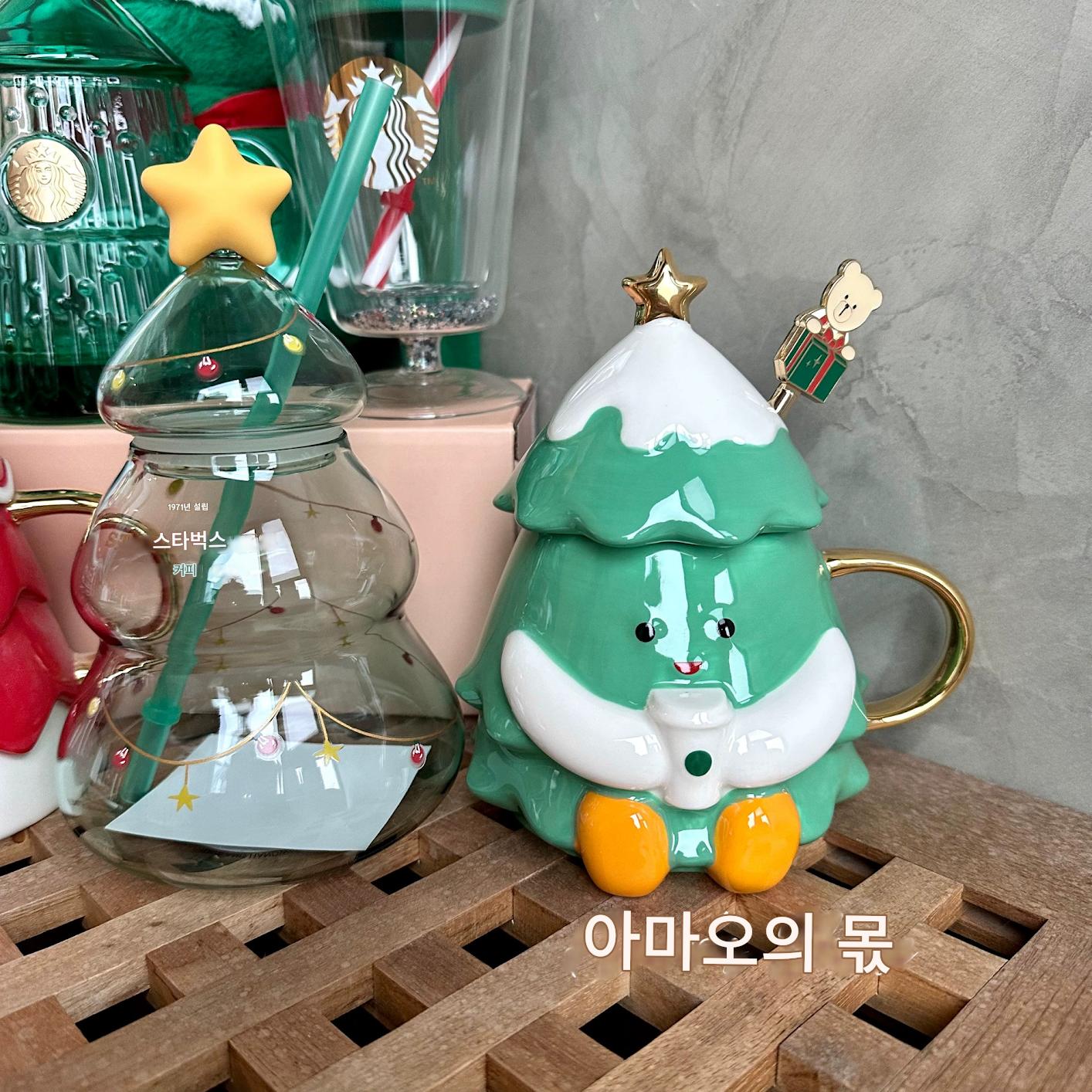 스타벅스 컵 크리스마스 선물 한정판 그린 크리스마스 트리 축제 분위기 세라믹 컵 머그잔