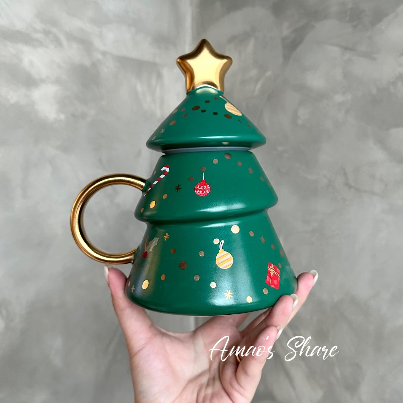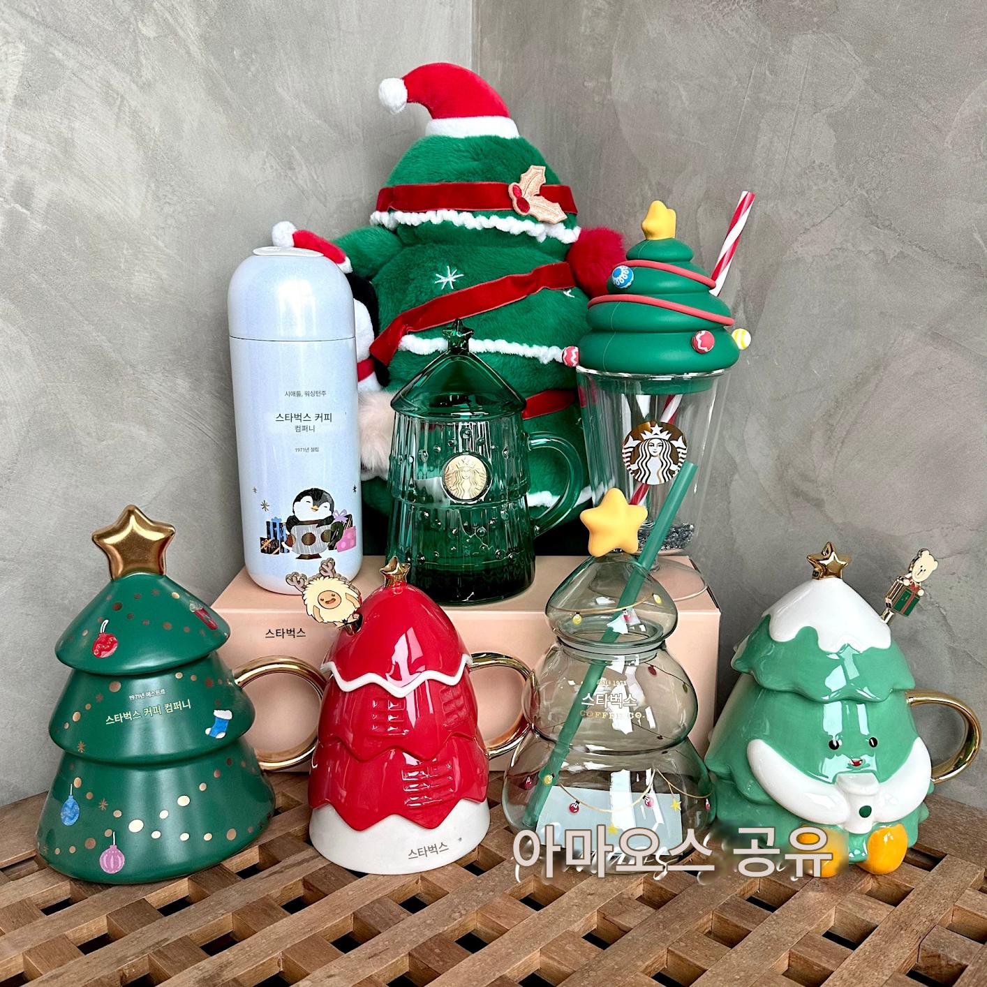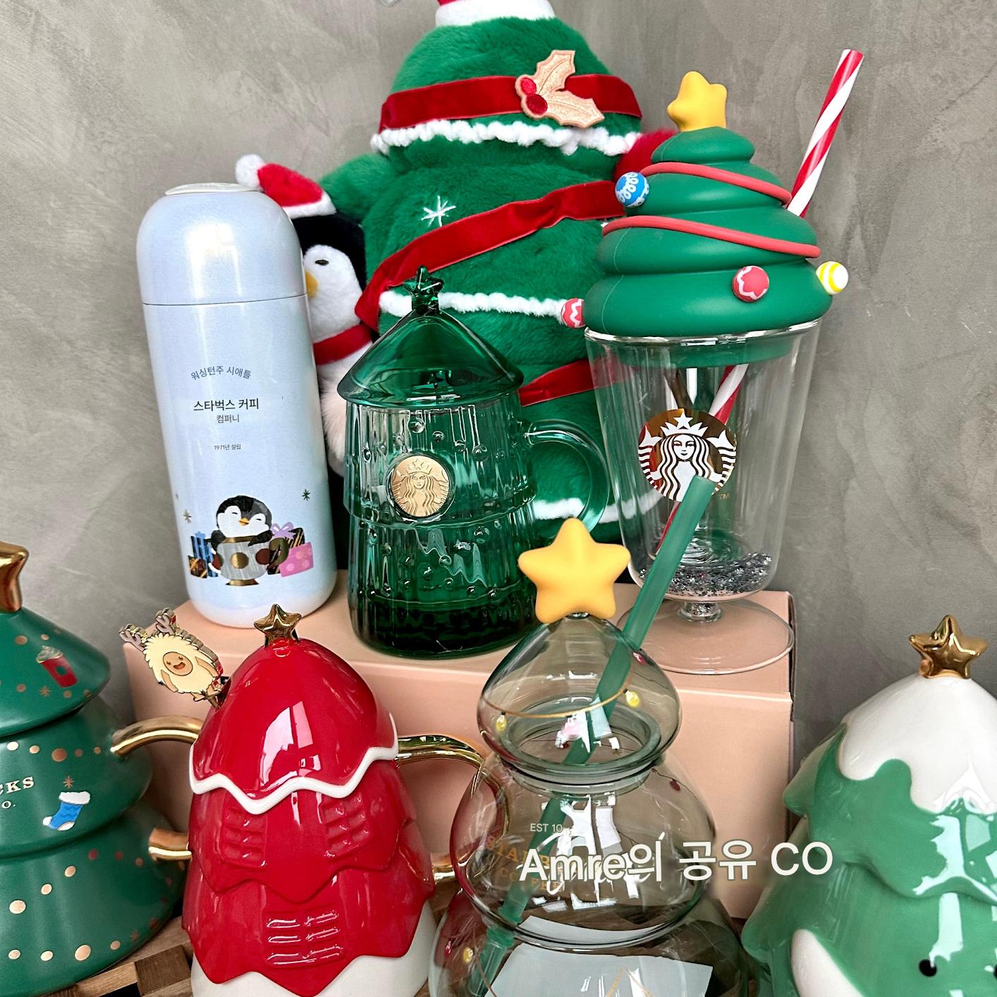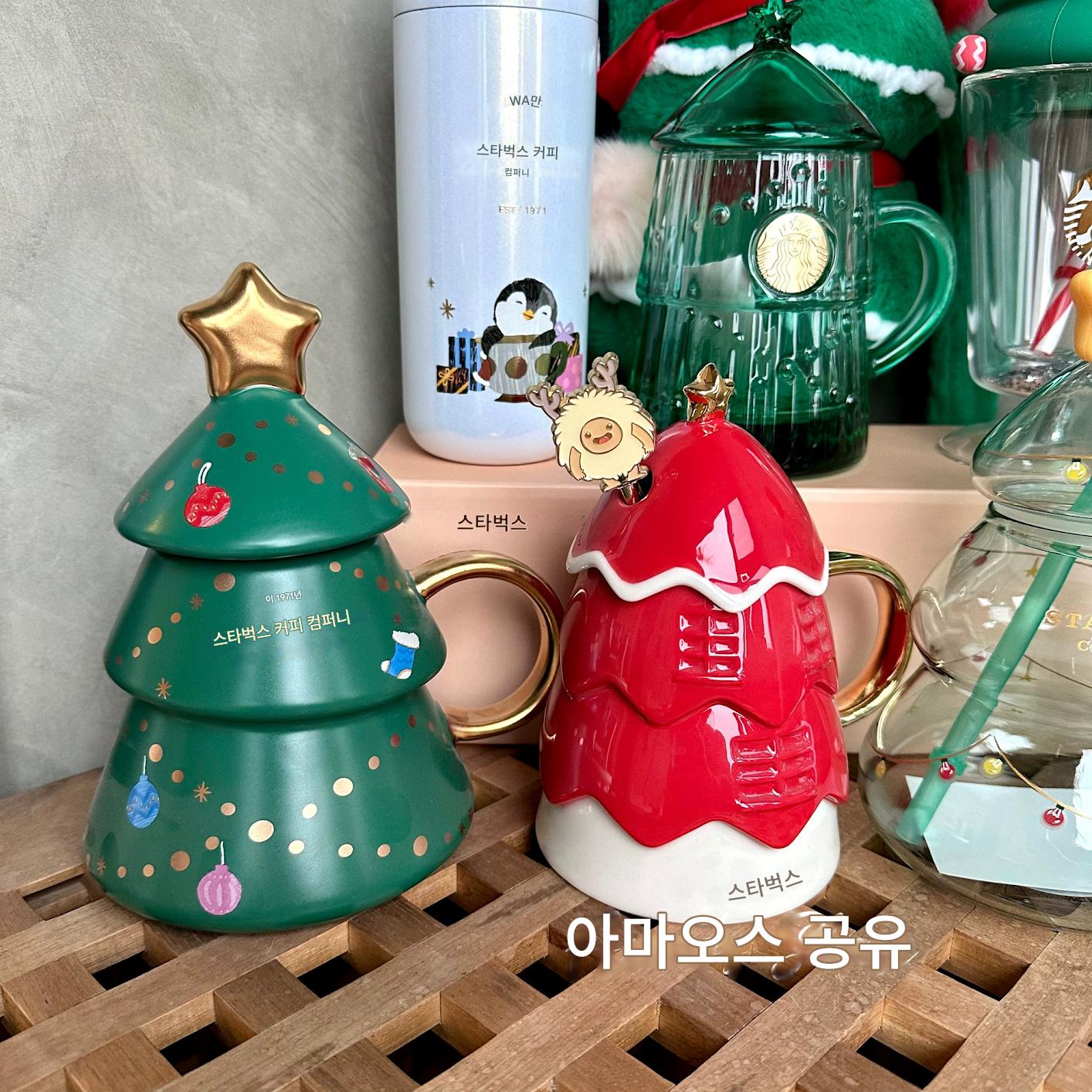 스타벅스 컵 크리스마스 선물 한정판 그린 크리스마스 트리 축제 분위기 세라믹 컵 머그잔