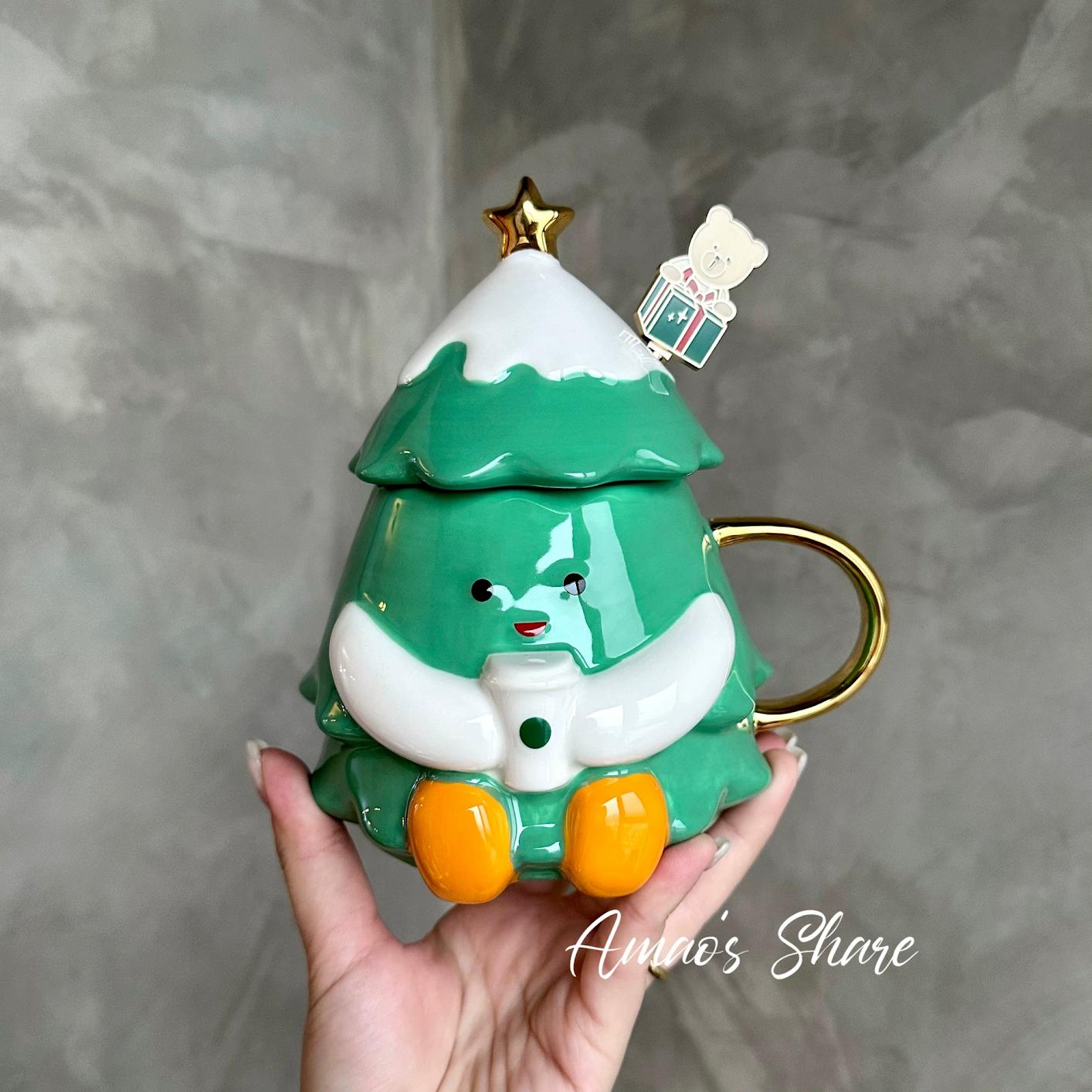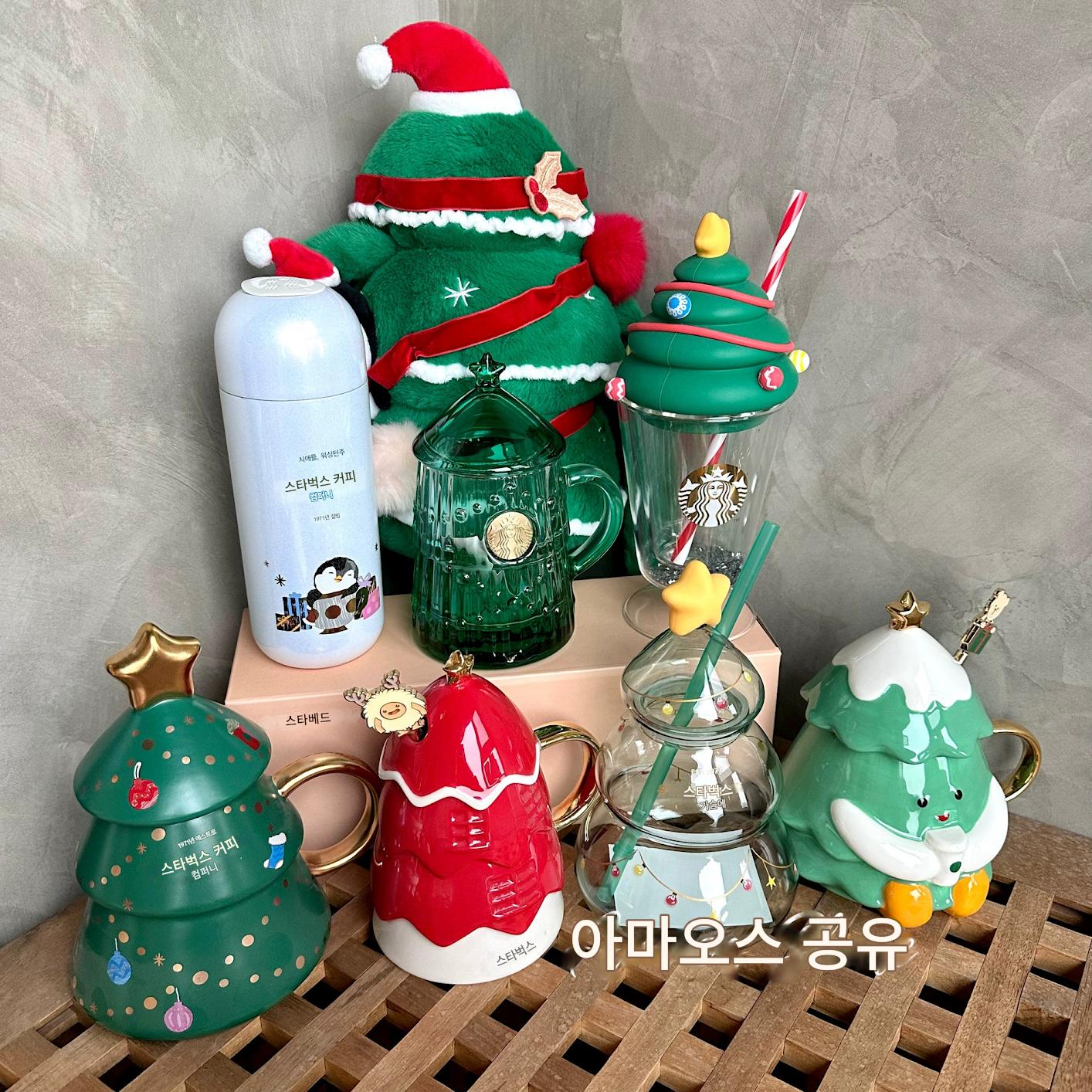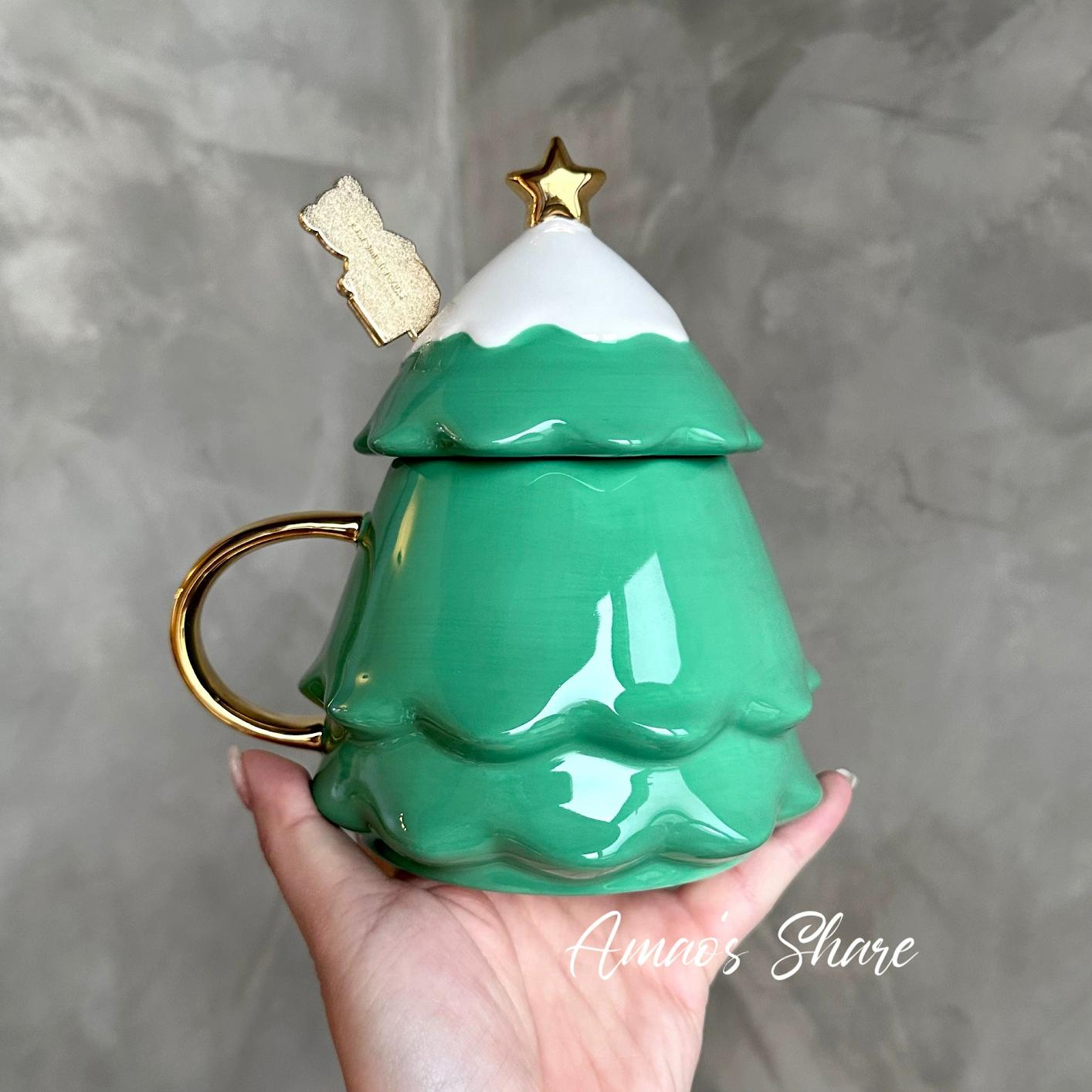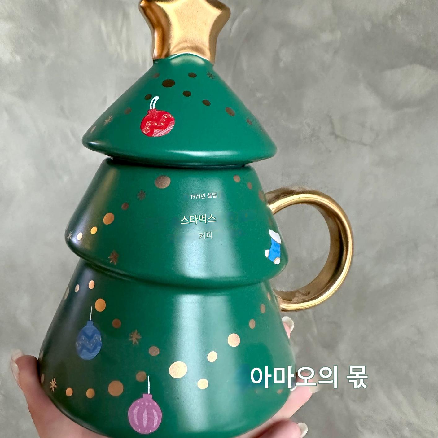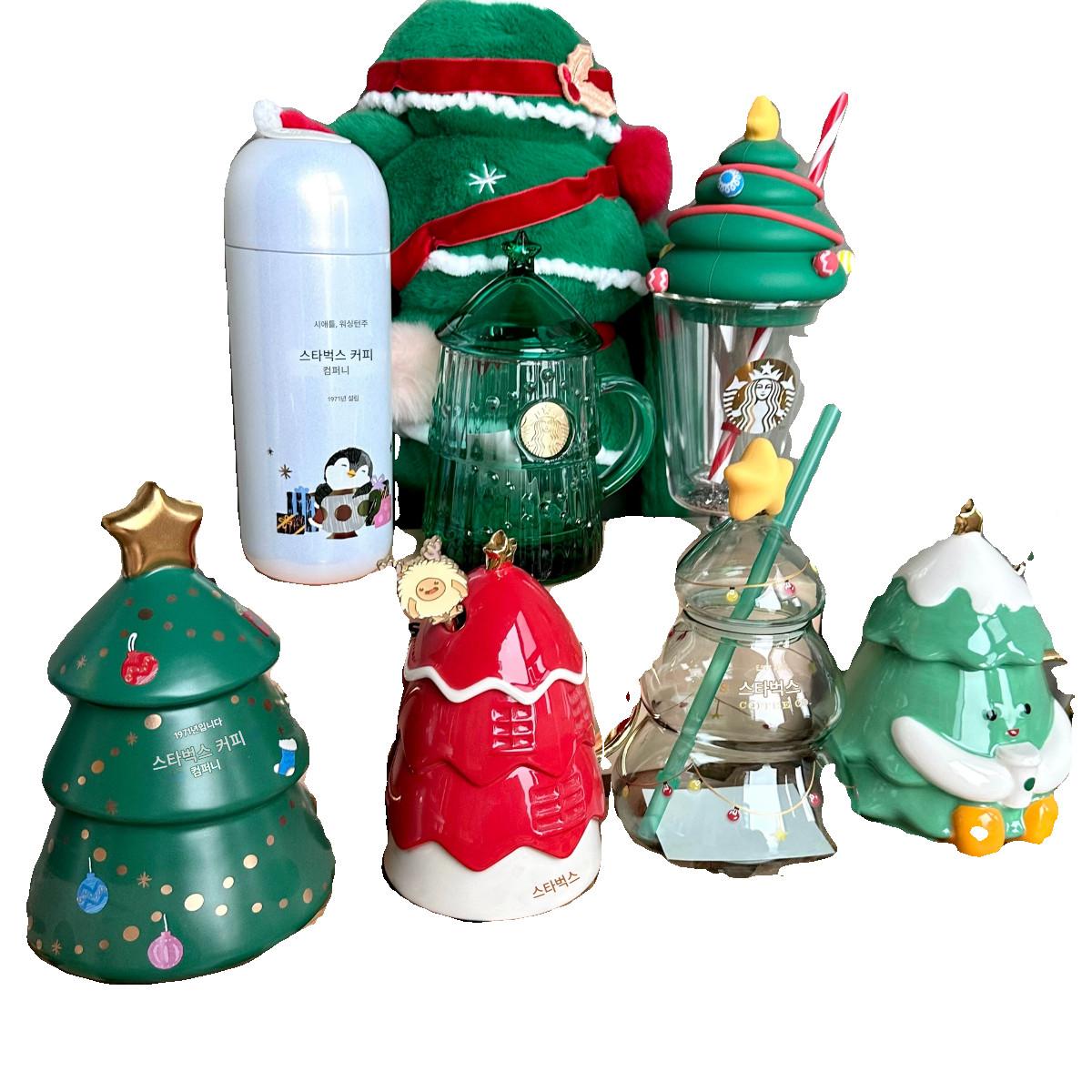스타벅스 컵 크리스마스 선물 한정판 그린 크리스마스 트리 축제 분위기 세라믹 컵 머그잔